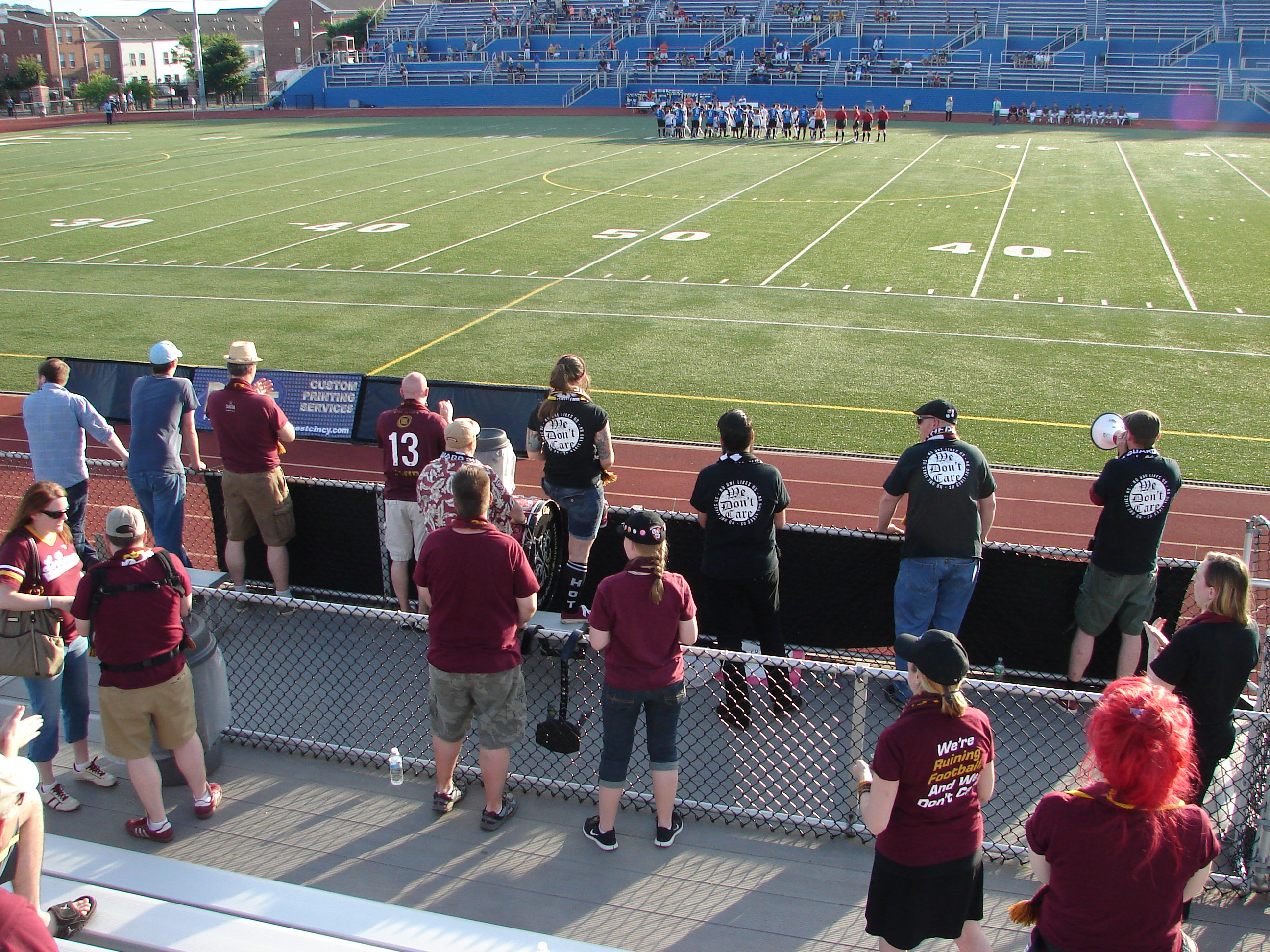 – Speaking of Detroit City FC soccer: The match was awesome. On the way to the match, my sister asked my nieces whether they thought they’d see anyone they knew. I piped in and said I will probably see more people I know than they will. And it proved true. I haven’t seen attendance numbers for the match, but were I to guess I’d approximate maybe three hundred people spectated the game, with about 10% of them Rouge Rovers. We scored, we shouted, then we smoked them out, naturally. It was a great game, especially for my sister and nieces. It was their introduction to a professional soccer match – their prior experience being the youth leagues that both nieces play in. Staying true to their Cincinnati turf, they preferred to sit opposite the crazy Detroiters, even though I taught them a couple of our chants (“We will sing for you City” and “No one likes us”) Whereas I joined those in rouge and gold.