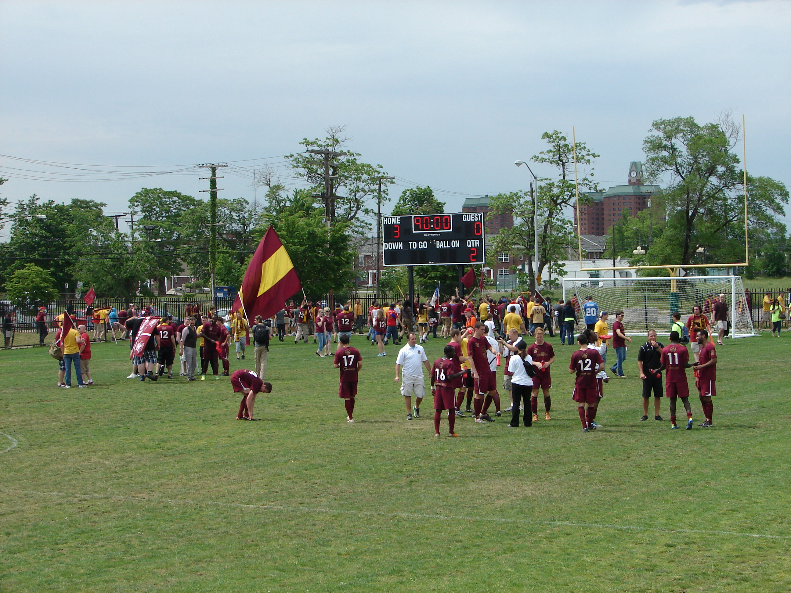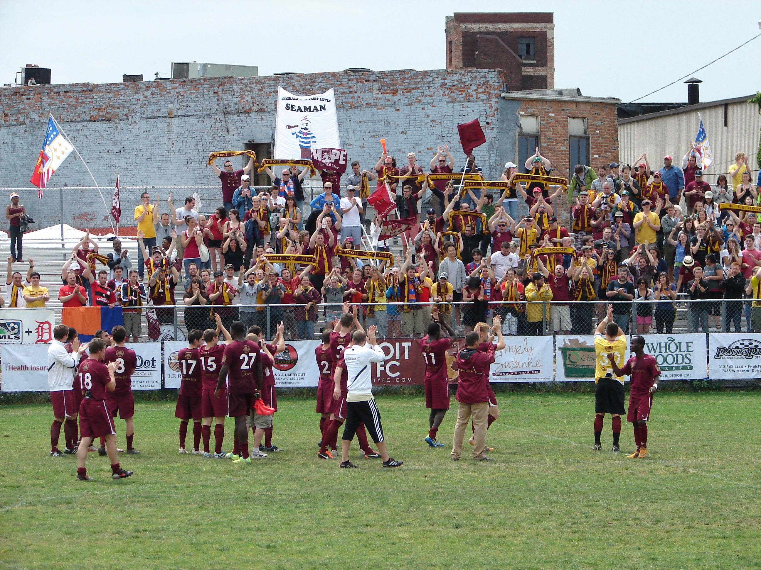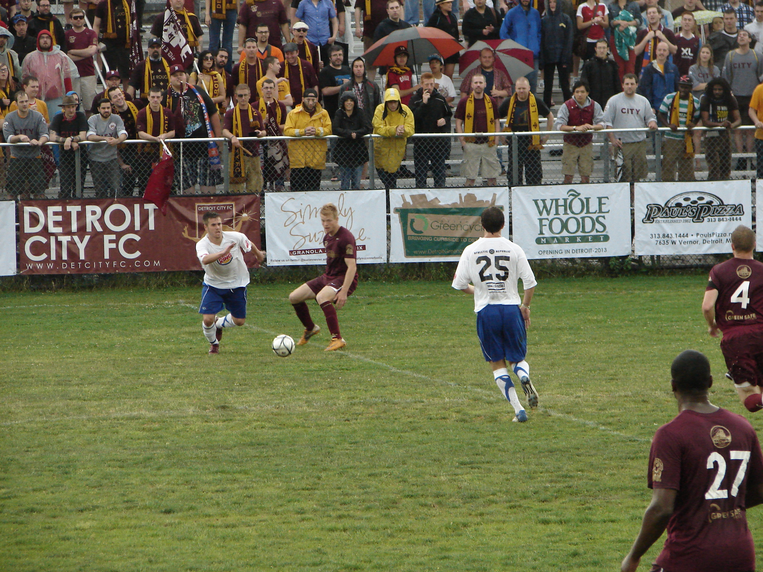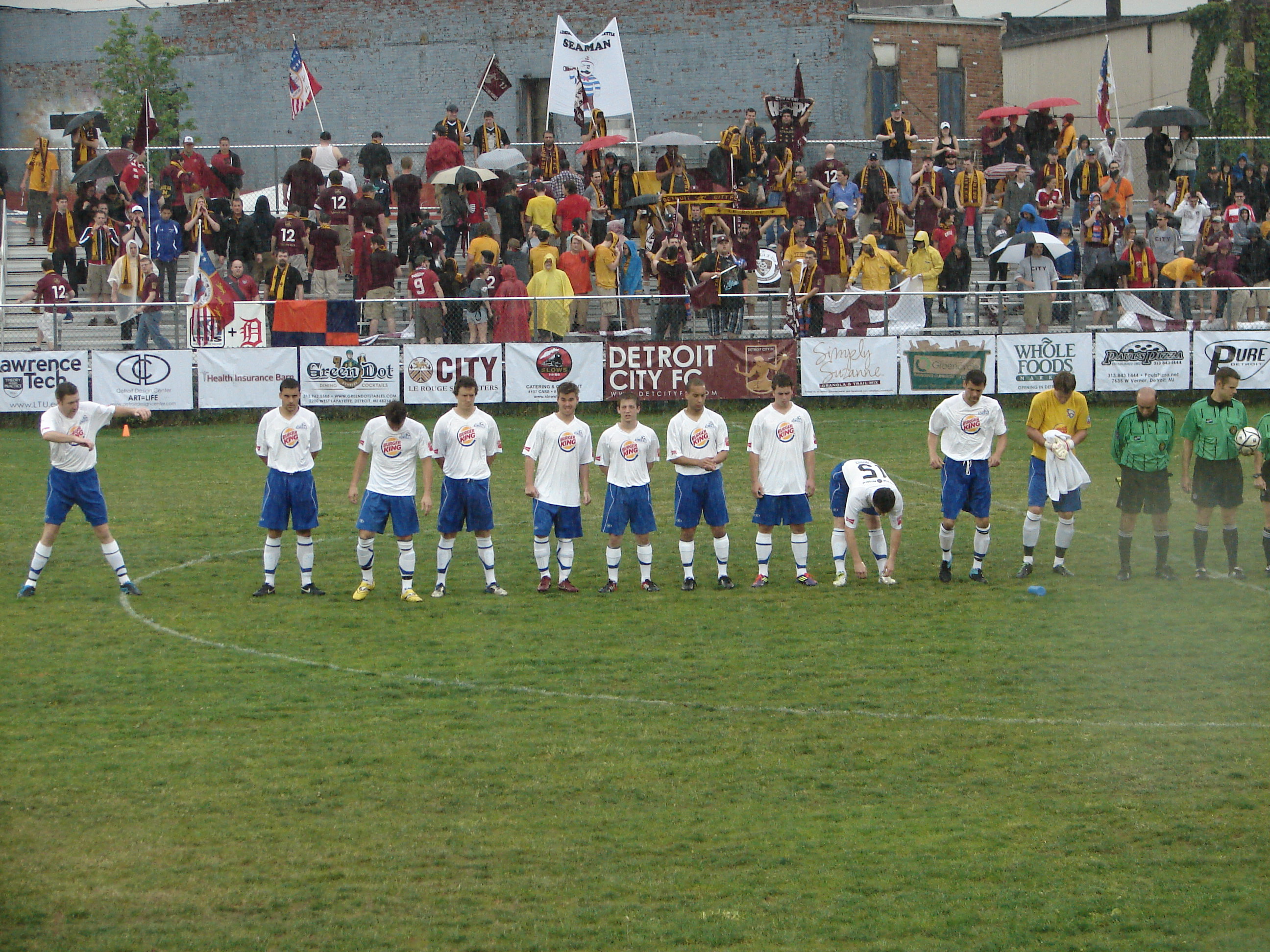 The first true test of support for Detroit City FC. A torrential rain hammered the fans early in the afternoon affair. But together, Supporters and team weathered the storm, putting three past the (Danny) Mudd between the Erie pipes.
