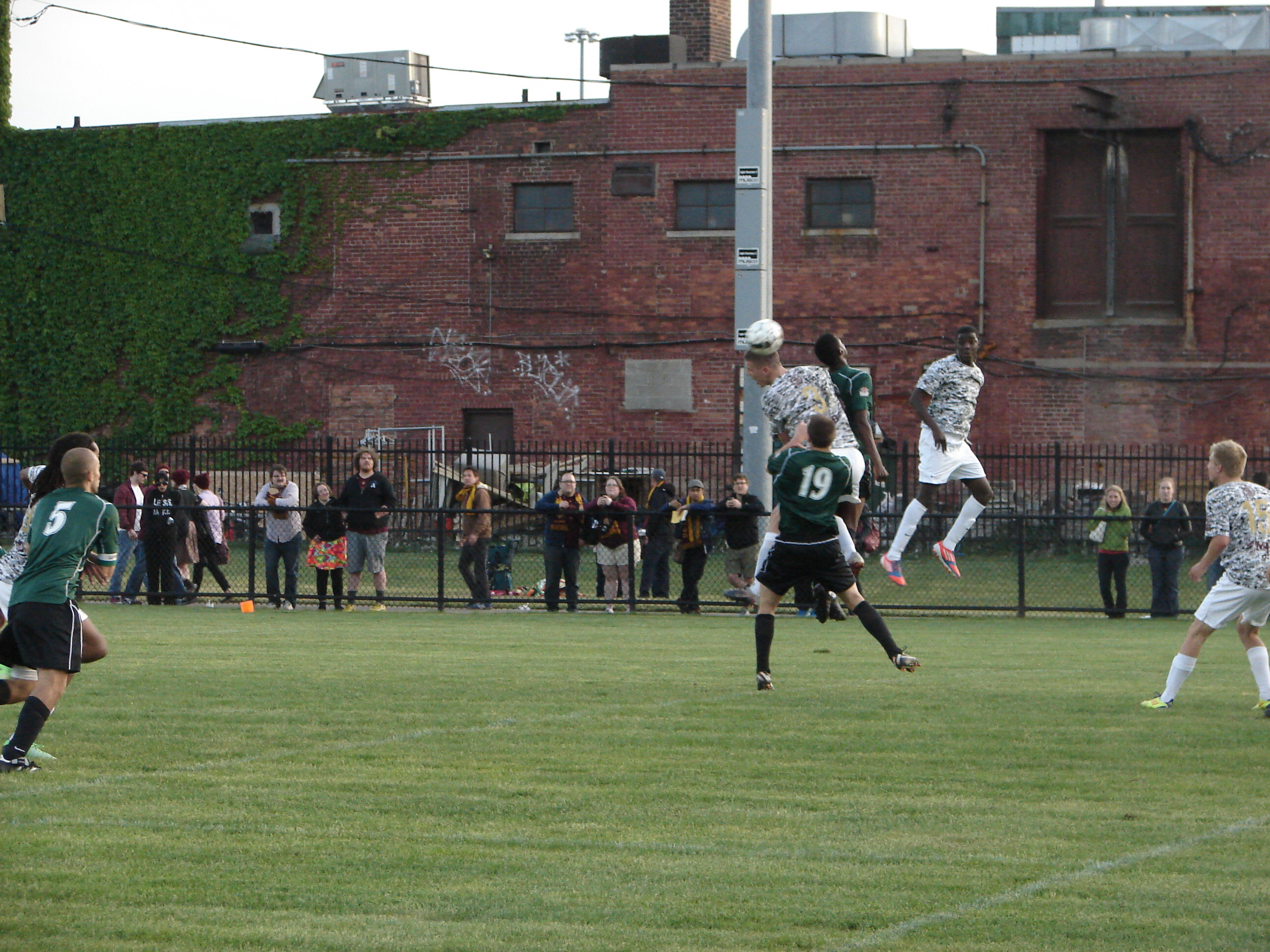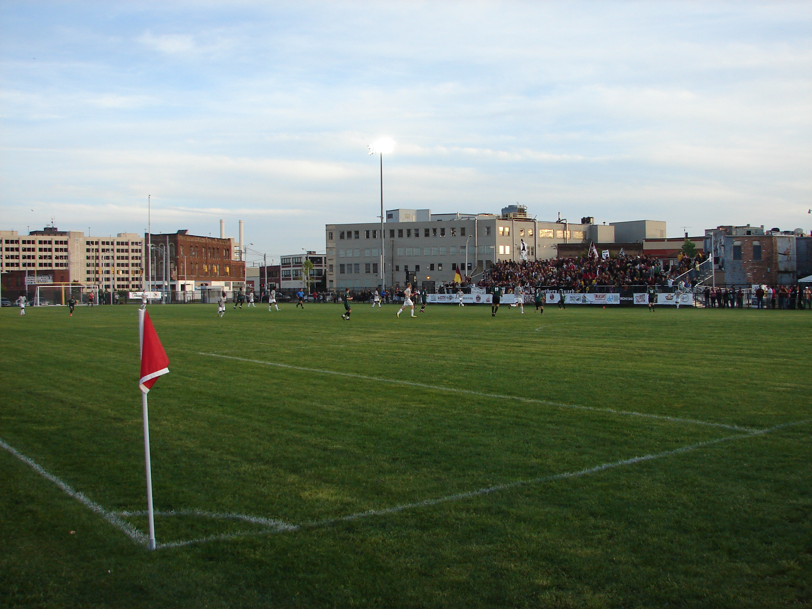 Detroit City FC partnered with the Northern Guard Supporters’ ‘Hooligans for Heroes’ nonprofit organization. The players wore special camouflage jerseys which were auctioned during the match, the proceeds benefiting the Wounded Warrior Project. From the Hooligans for Heroes website: