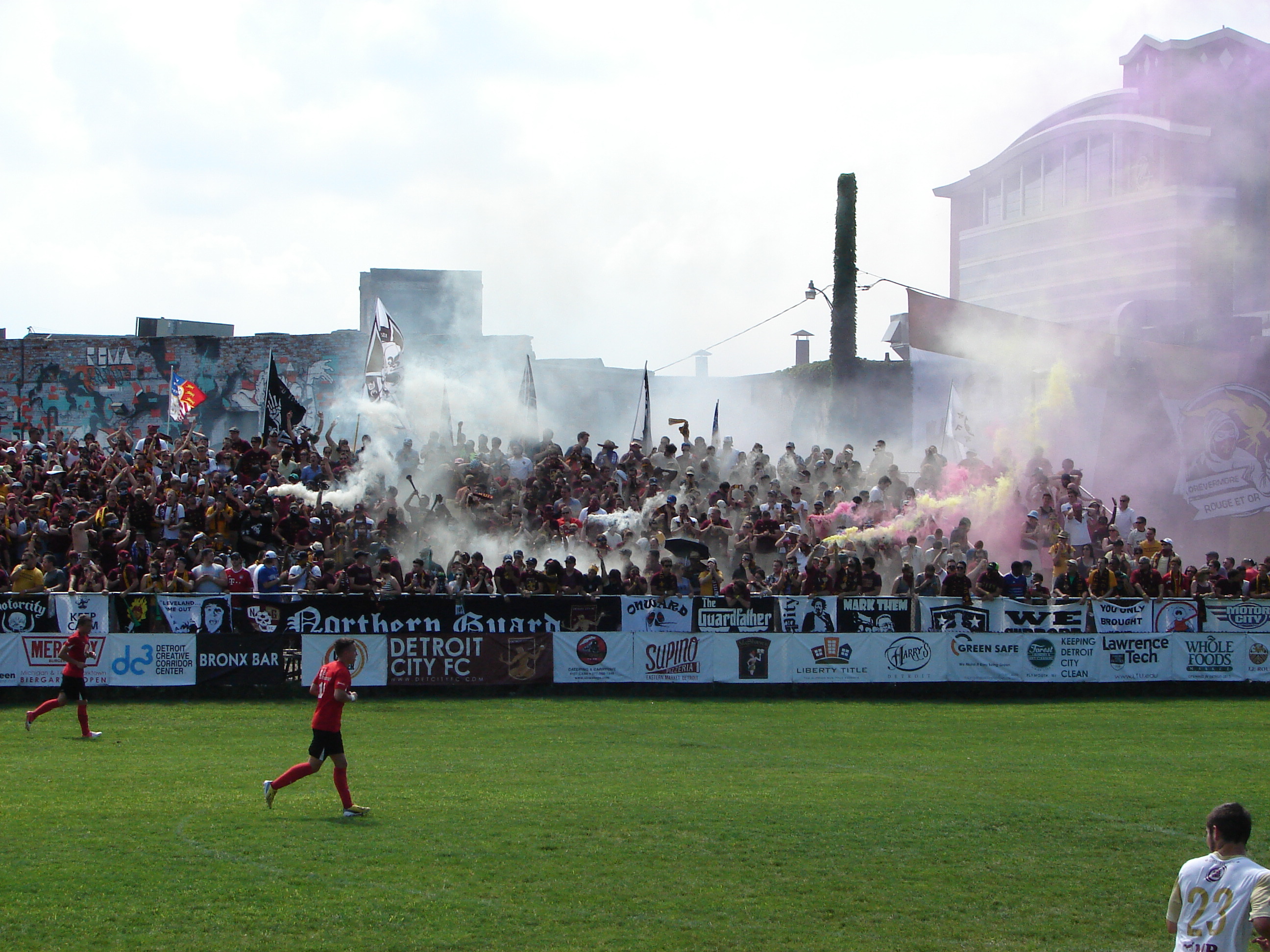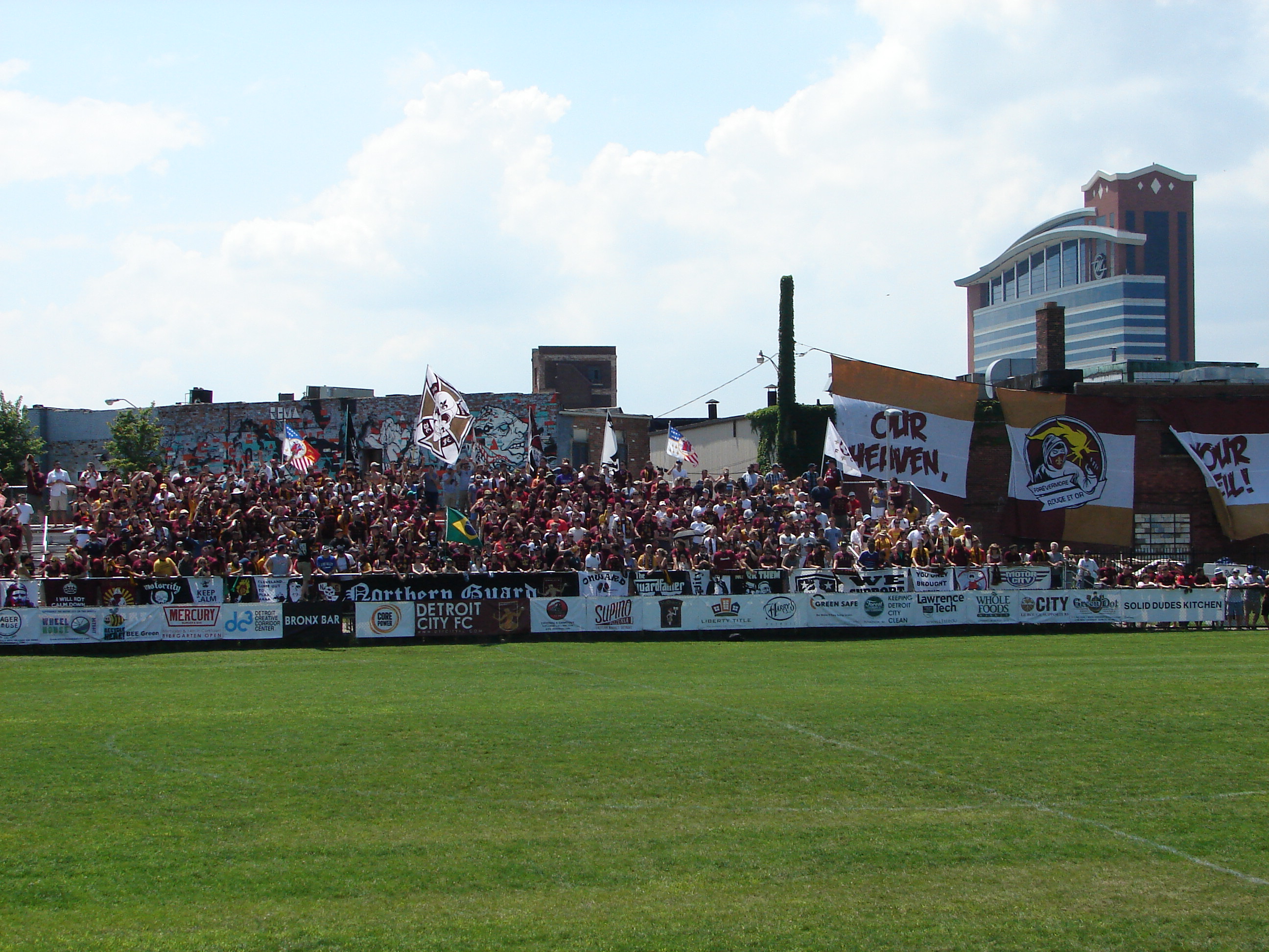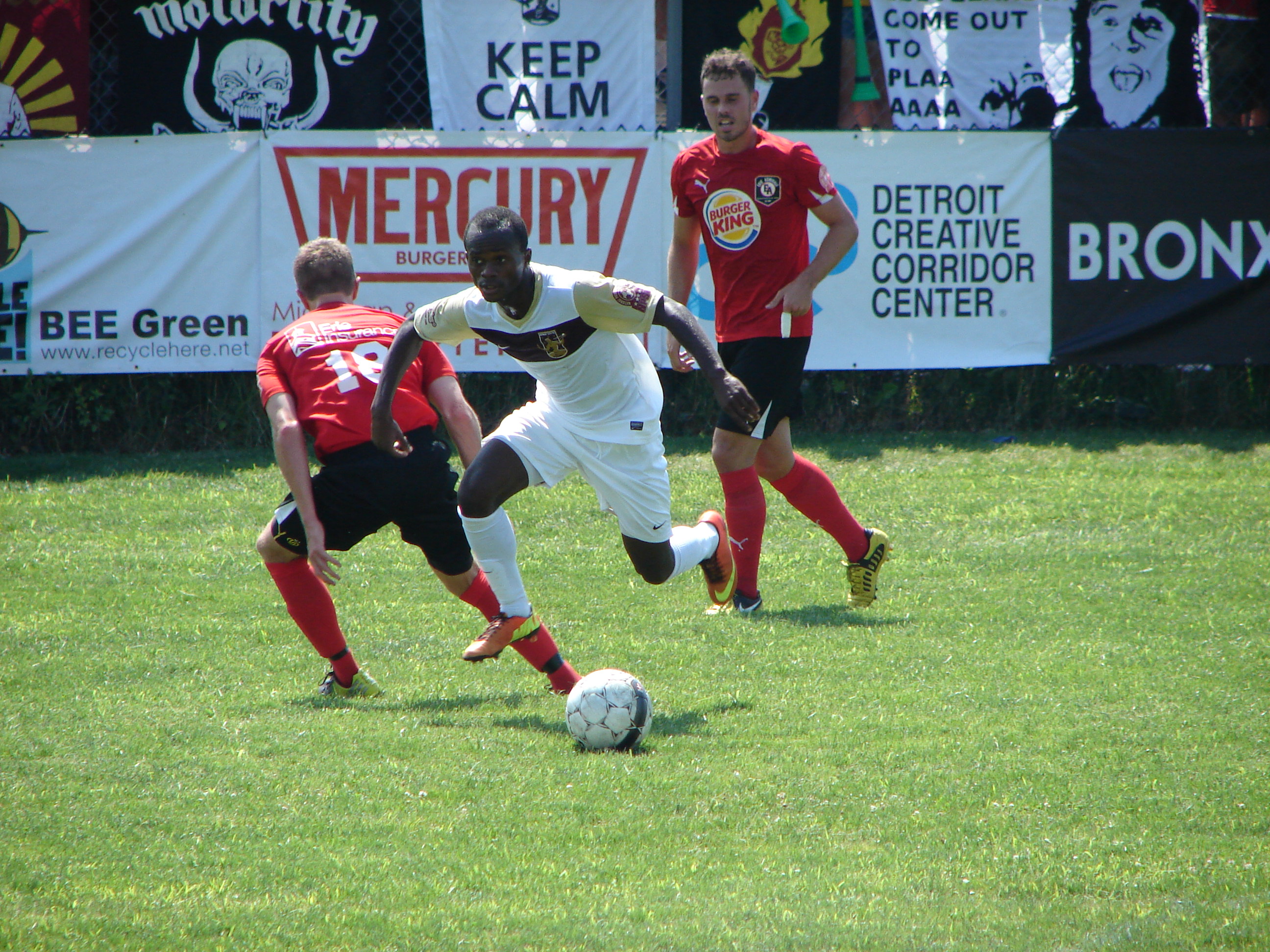 Second, I remember it was a scorching hot day. As the game progressed in the second half, and Le Rouge’s chances at victory diminished, the verbal taunts were getting nastier. During the second half I positioned myself along the fence on the Supporters’ side near the north goal that DCFC attacked. Within the final ten minutes, I heard a guy – one of many on that day – calling Erie keeper Dan Mudd some unflattering names. A police officer – I don’t recall if it was a DPS officer or a City of Detroit police officer – told the guy to knock it off. He took offense to being singled out of everyone in the area that was verbally abusing Mudd and the other Erie players. The cop began flexing his power by saying he could have him removed from the stadium and arrested. The fan persisted in questioning why him over everyone else. For a moment I thought I was going to have to pull my business card out and offer it to the kid in the event the officer followed through. Cooler heads prevailed.