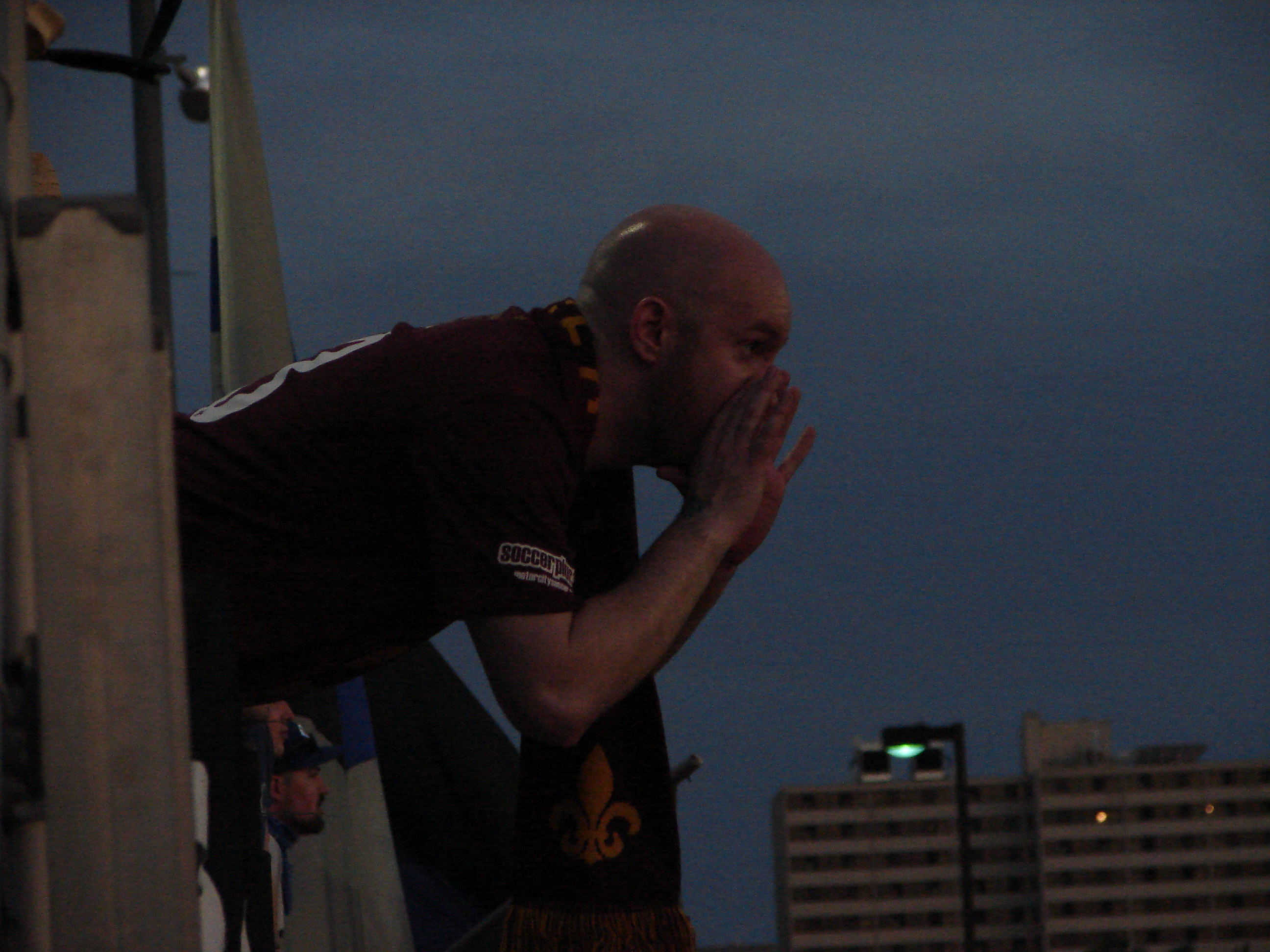 The game. Marie, Amanda, and Ashley didn’t want to join me with the Northern Guard Supporters, so they sat with their small patch of fans while I joined NGS.