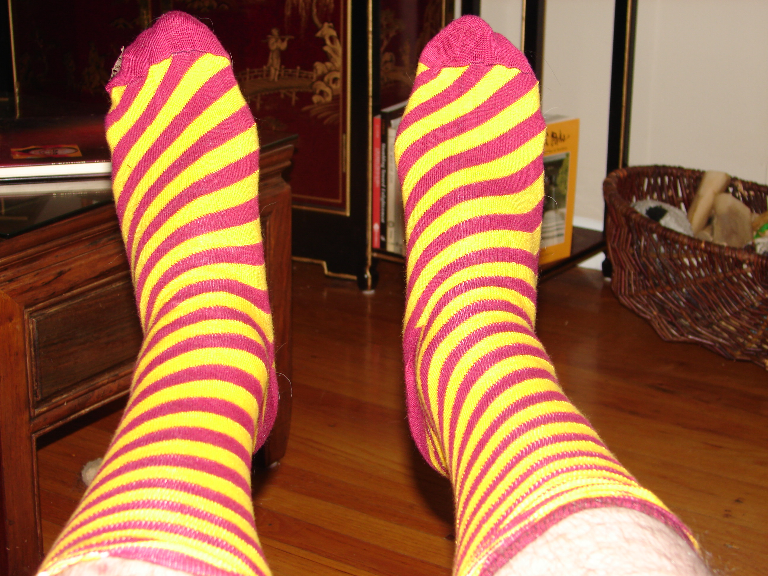 It was the first steamy summer day for shorts, so I was able to debut the socks my niece Anna got me for Christmas. She’s attending Central Michigan University.