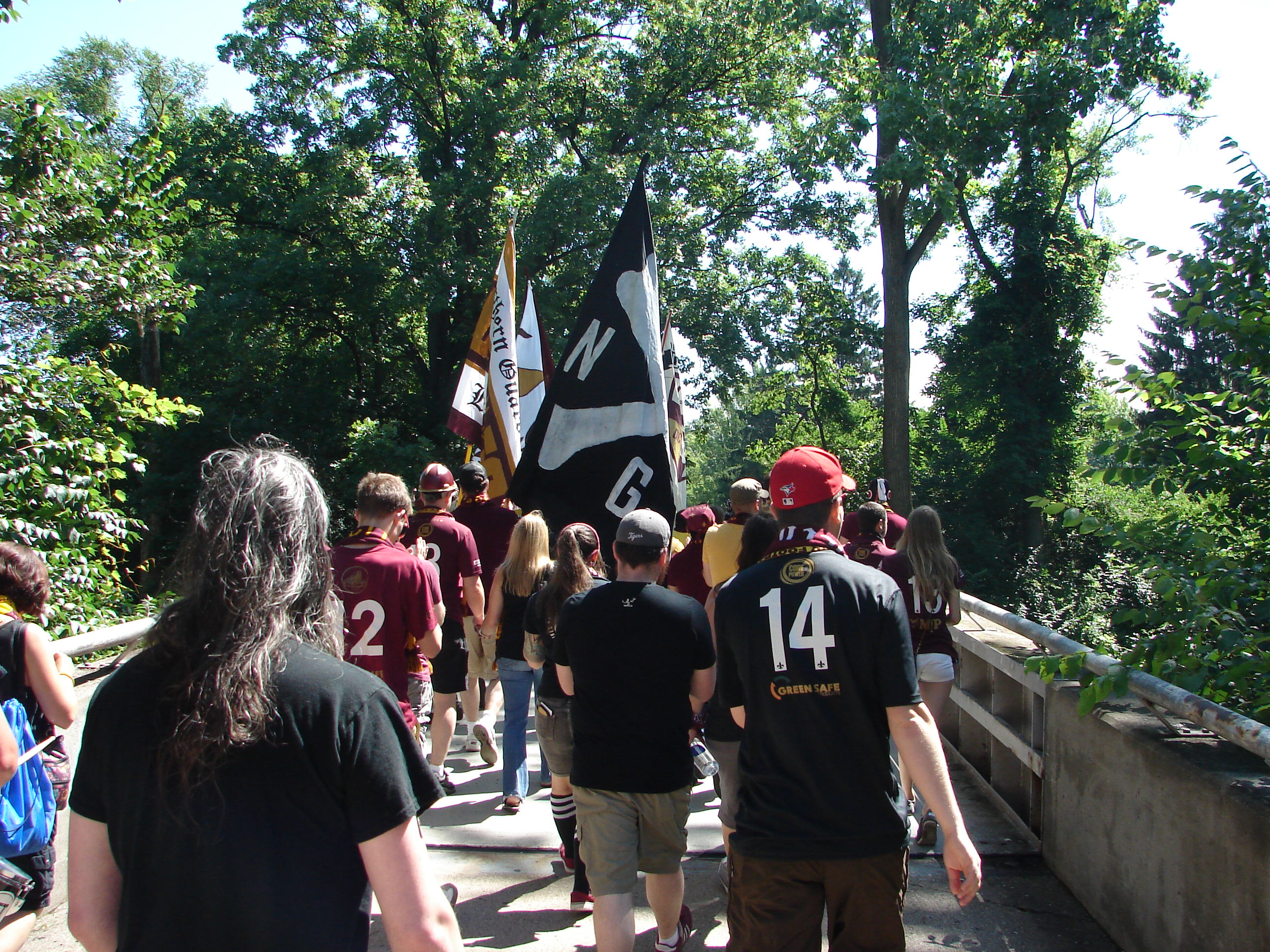 We met at Harrison Roadhouse for the breakfast buffet, out-shouting the couple of tables of “Sons of Ransom” supporters, then marched to DeMartin Stadium, home of the MSU Spartan soccer team. The announced attendance trickled over the two-thousand mark, but we accounted for a significant portion of that. We were not in the majority of bodies in the stands, but we certainly were the loudest.