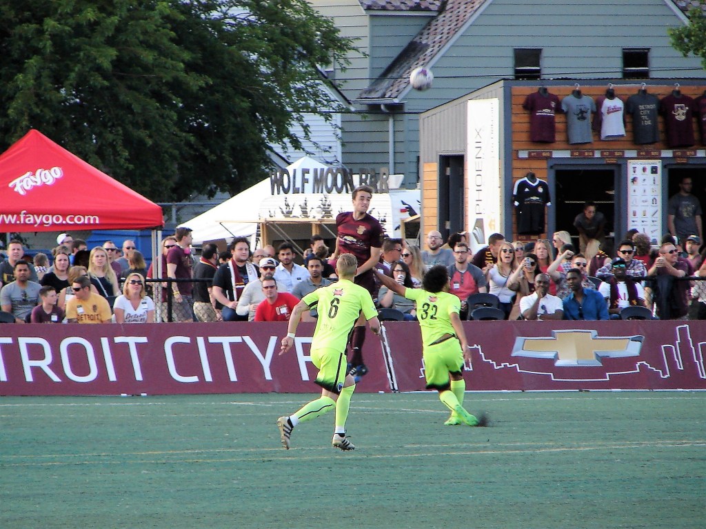 It was set-up for Detroit City FC to shrug off the pre-Glentoran matches and chart a new course to ascend the standings. But that was almost erased in the 28th minute, when Greg Timmer tapped in a goal, from a ball launched into the box from the head of Cam Cavanagh, for short-handed Grand Rapids FC. The heart paused, skipping a beat, as a nightmare reappeared. But then, it pumped again as play resumed. Thirty seconds after the restart, Bakie Goodman sent a pass to Tyler Moorman, which was cut off by Grand Rapids defender, Trent Vegter’s head, guiding it into the path of Louis Dargent, who fired it past Fazekas’ replacement, Aaron Orban, leveling the score.