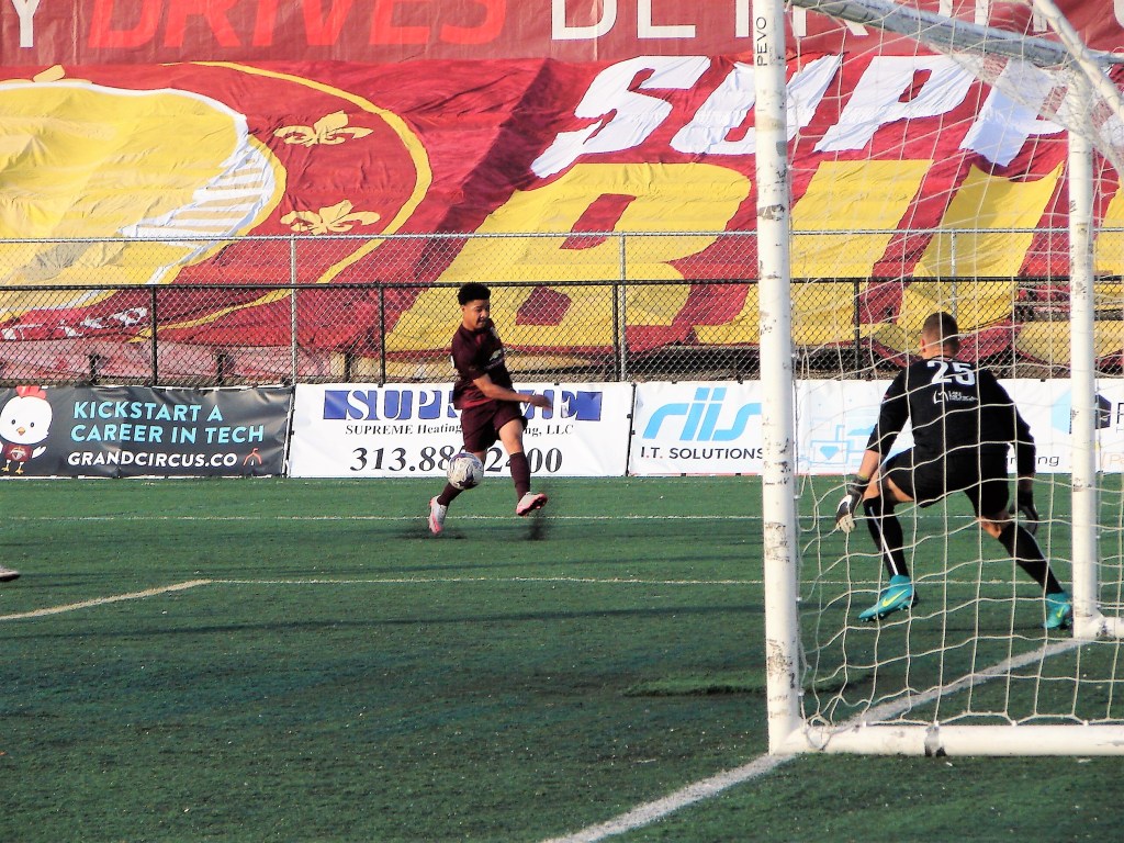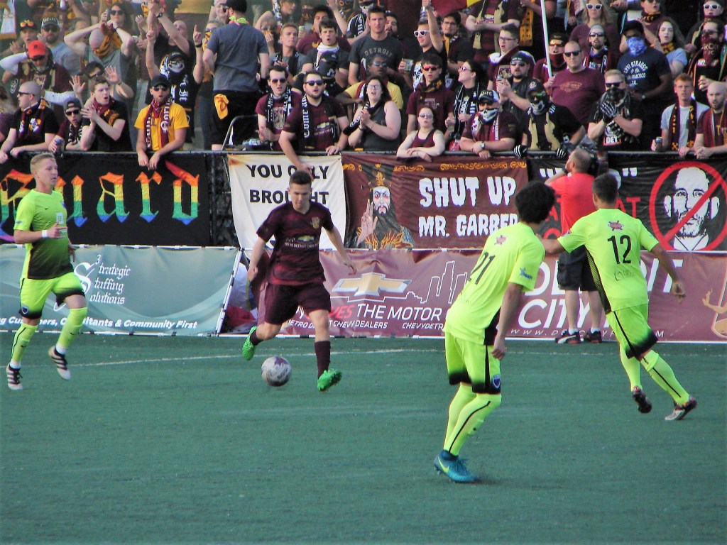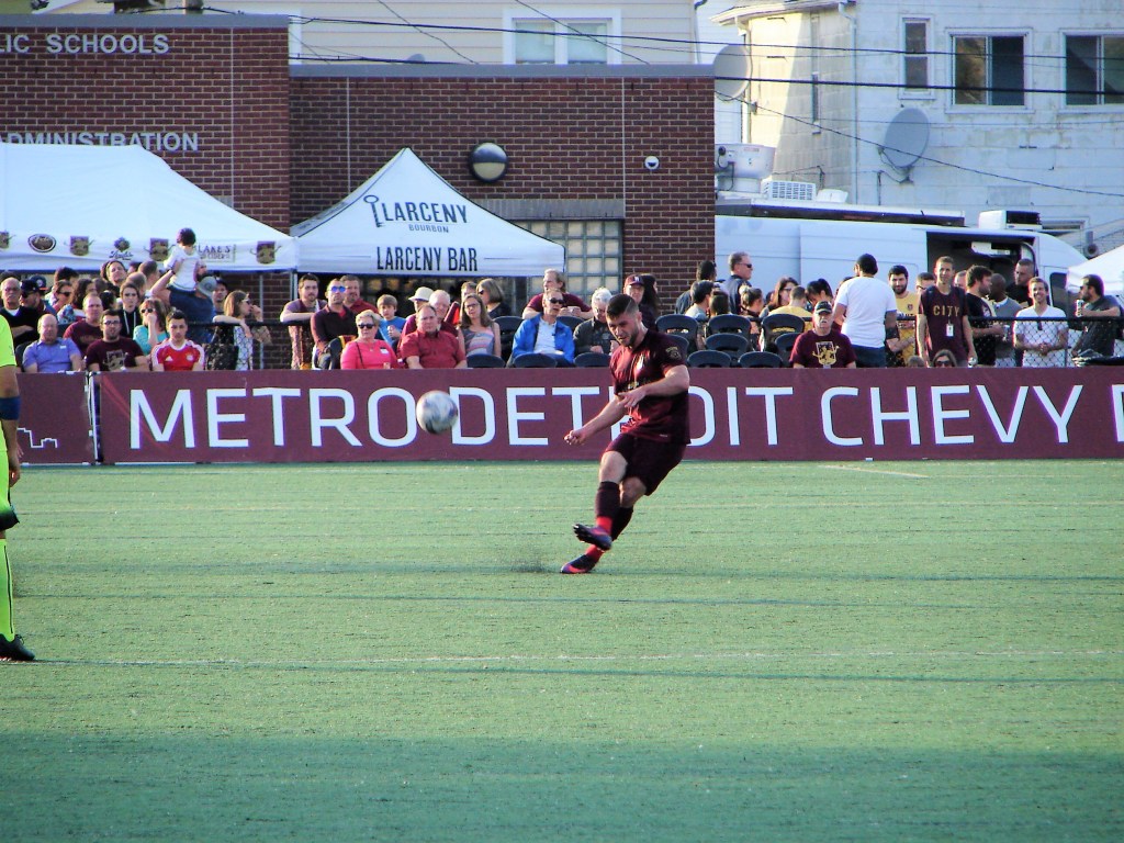 It was set-up for Detroit City FC to shrug off the pre-Glentoran matches and chart a new course to ascend the standings. But that was almost erased in the 28th minute, when Greg Timmer tapped in a goal, from a ball launched into the box from the head of Cam Cavanagh, for short-handed Grand Rapids FC. The heart paused, skipping a beat, as a nightmare reappeared. But then, it pumped again as play resumed. Thirty seconds after the restart, Bakie Goodman sent a pass to Tyler Moorman, which was cut off by Grand Rapids defender, Trent Vegter’s head, guiding it into the path of Louis Dargent, who fired it past Fazekas’ replacement, Aaron Orban, leveling the score.