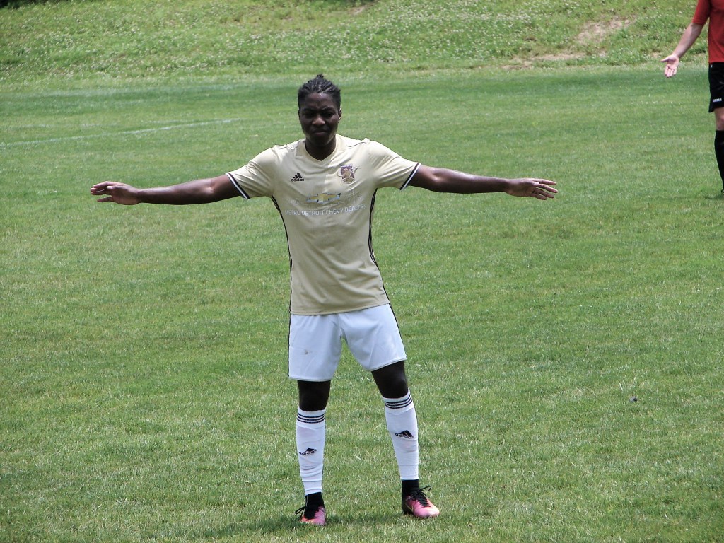 Unfortunately, just three minutes later, an Indiana player fed the ball into the box, where another Indiana player (sorry, no line-up or program was provided to the paying fans by this Green Acres organization) fired a shot. Keeper Colin Miller made a diving hand save, but the ball ended up on the foot of Lukman Ahmed-Shaibu, to equalize. Rather than celebrate with the handful of folks cheering his team on, Ahmed-Shaibu thought that taunting the Rouge Rovers was the thing to do. Really? The man must not have ever heard of Detroit.