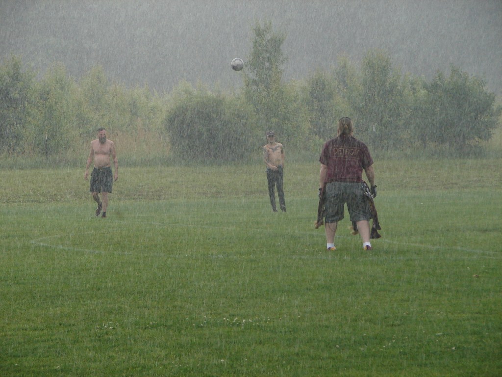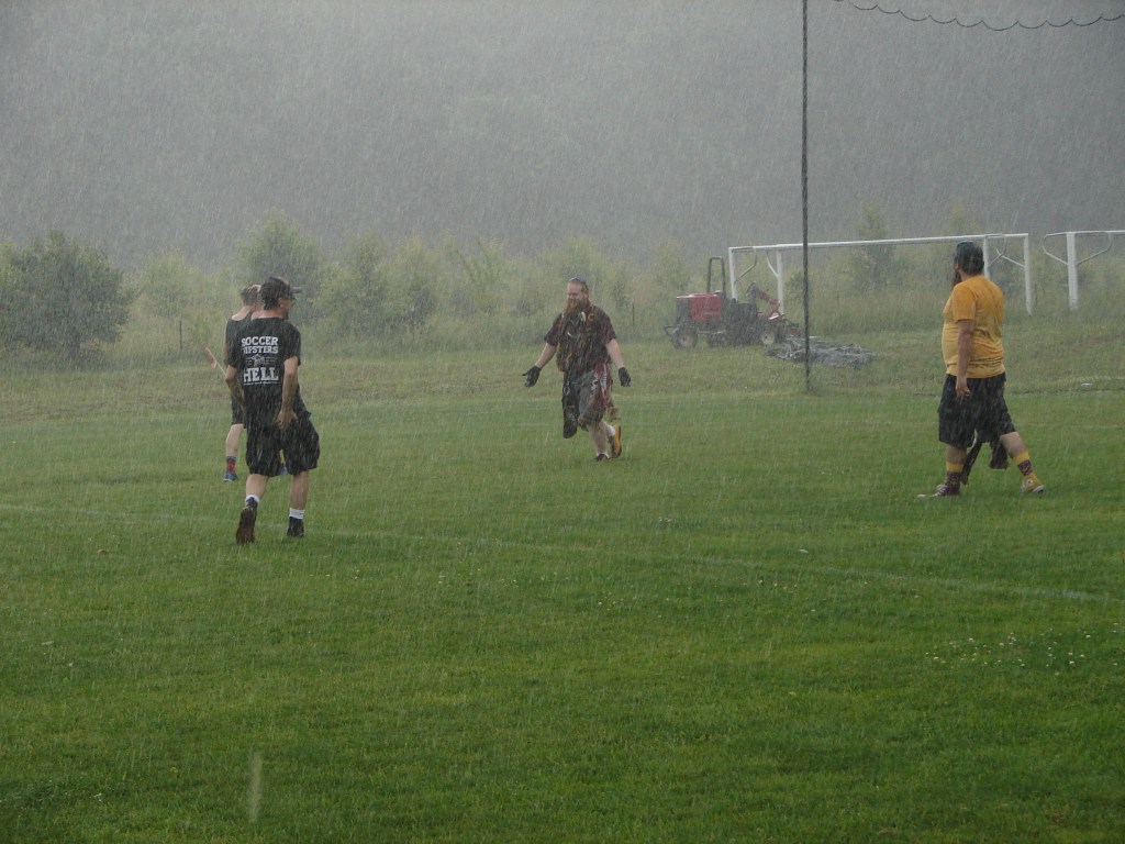 Just as the half was coming to an end, dark clouds rolled in, and with the final whistle, the players headed into the locker rooms in a downpour.
