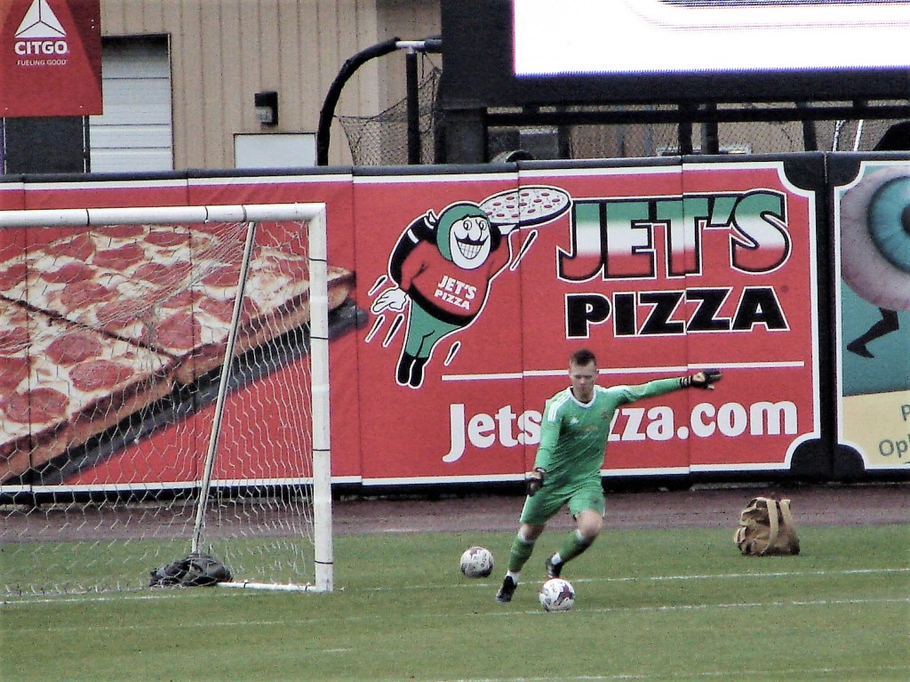 Then, just before the 7th inning stretch…er 74th minute, City set up for a corner kick. It curled in, but was then headed out by a Grand Rapids defender. However, it fell to the feet of Bakie Goodman, who sent a low knuckle-ball back on goal, which Fazekas bobbled (but not between his legs like Bill Buckner), to secure the victory.