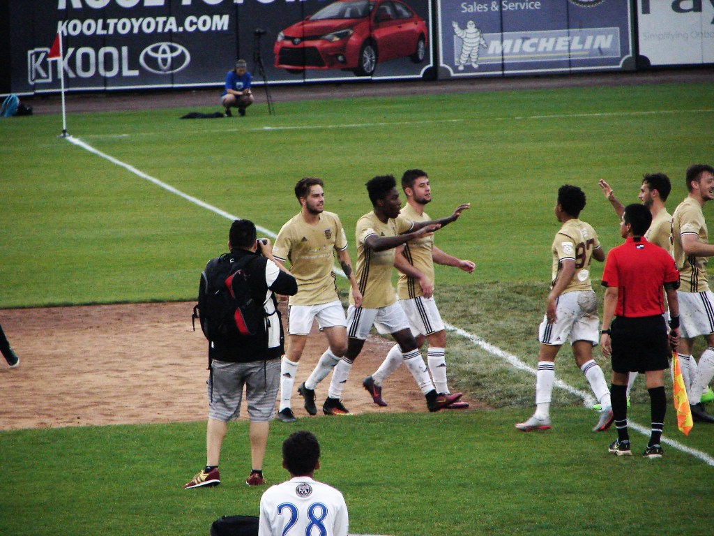 In the top of the sixth inning…er, I mean, 62nd minute, Tyrone Mondi lofted a ball from just inside the center stripe, which found the head of Shawn Lawson in the box, popping it up and over the reach of keeper Noah Fazekas’ glove, giving City the lead. This was Lawson’s fifth straight game, in all competitions, with a goal, and the fourth game-winner.