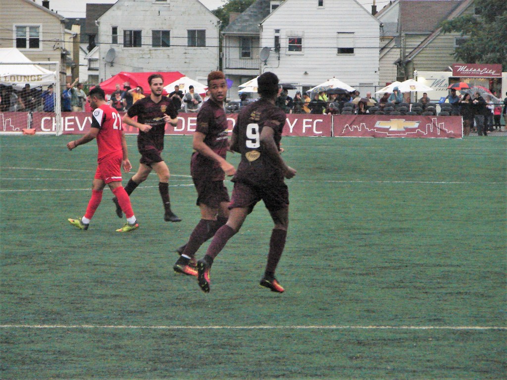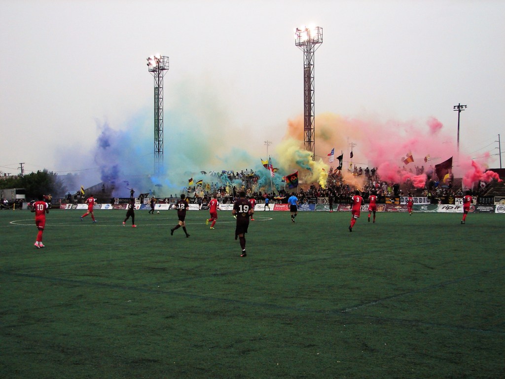 This is the fourth match in a week for the team and supporters. And though the rain kept the attendance numbers down, it didn’t dampen the enthusiasm. A win tonight would put City on top of the division, with three matches remaining – home against AFC Ann Arbor and a home-and-home weekend against Lansing.