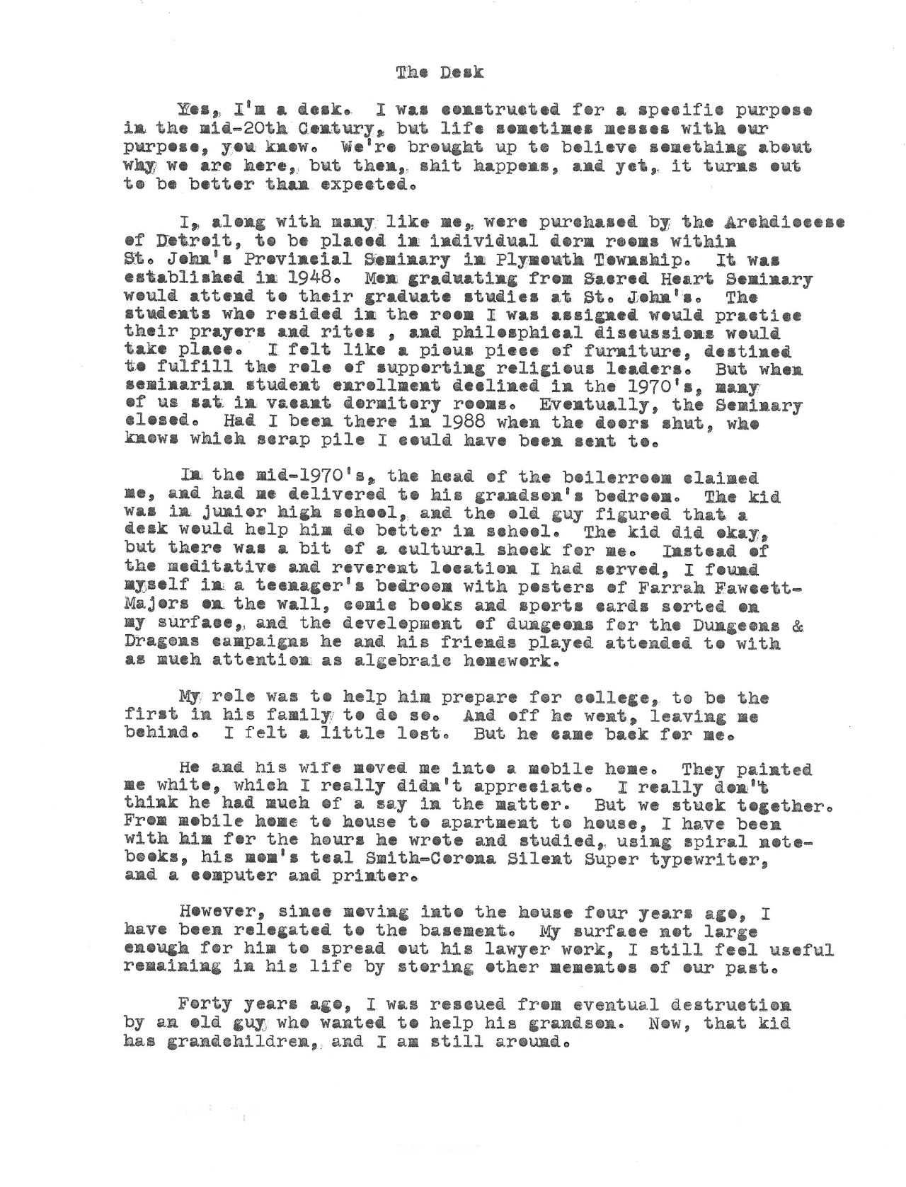 Joe Van Cleave’s Sixteenth Typing Assignment was a fun one.  “Write about a personal artifact in your possession. Fiction, nonfiction – use the object in your piece however you wish.”
