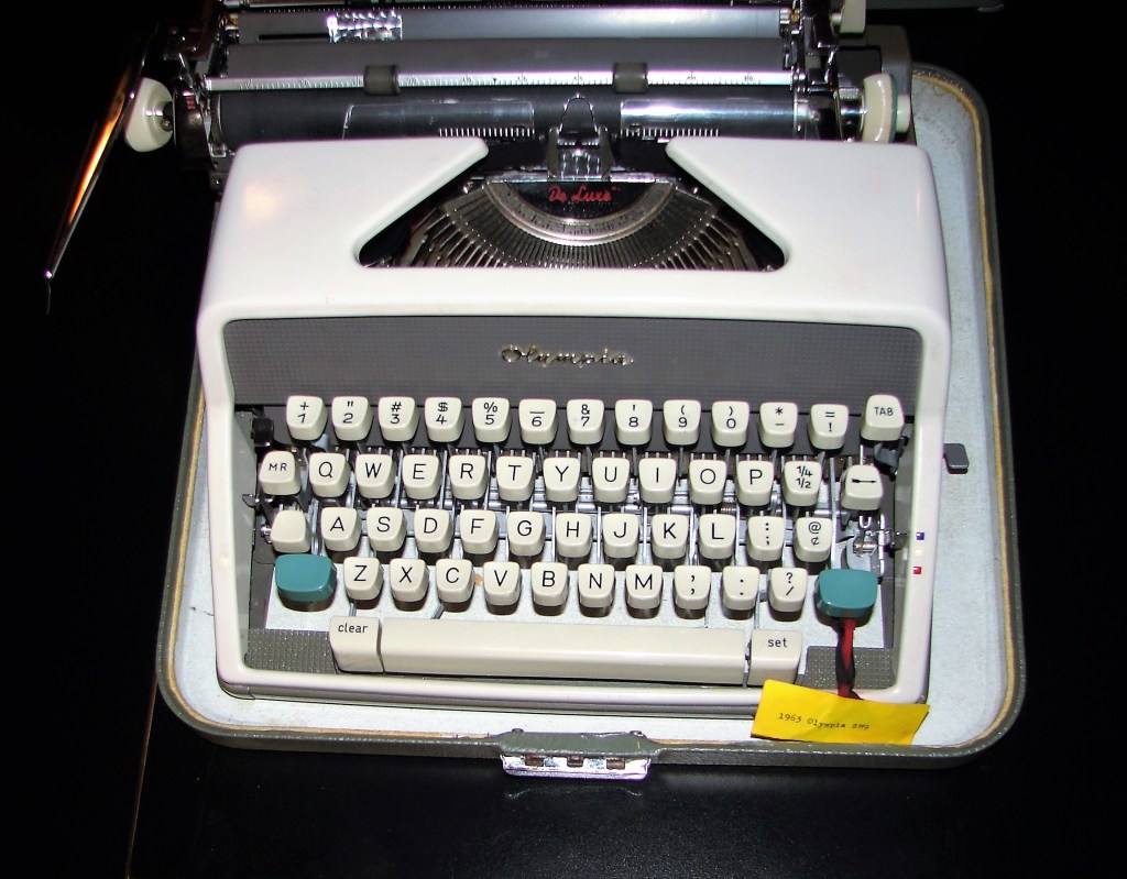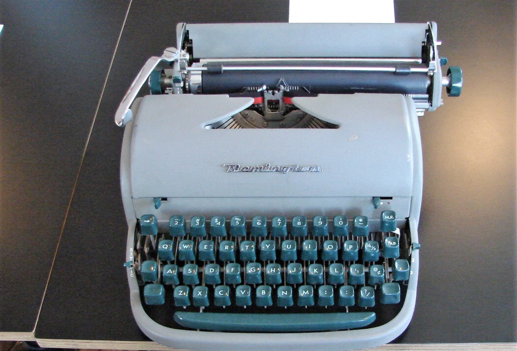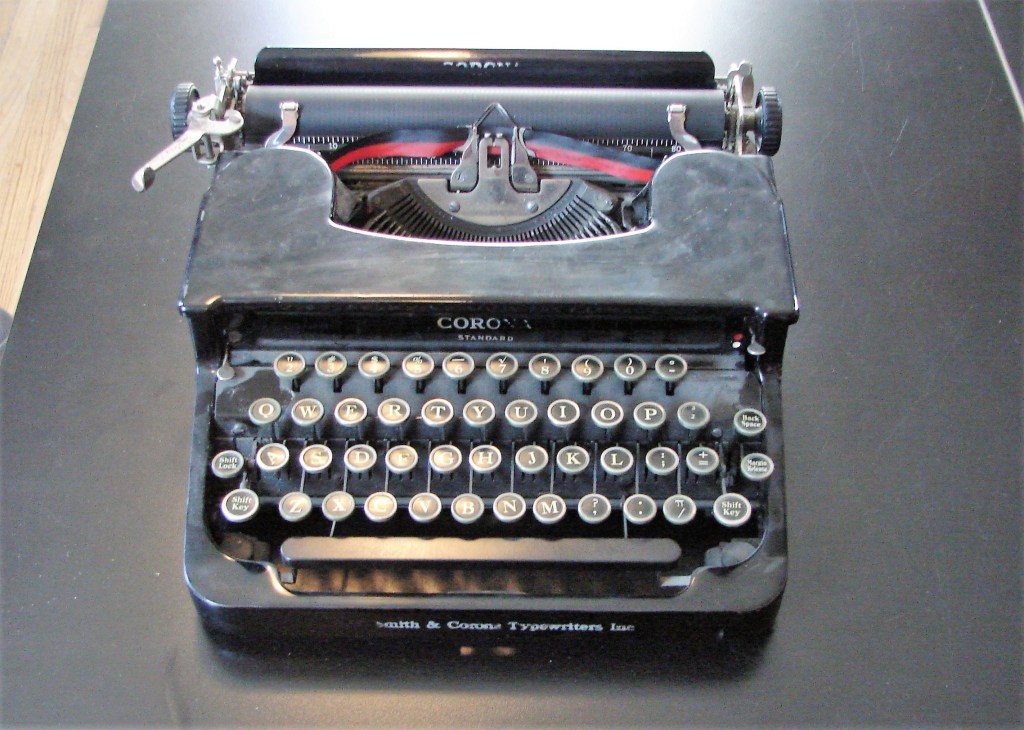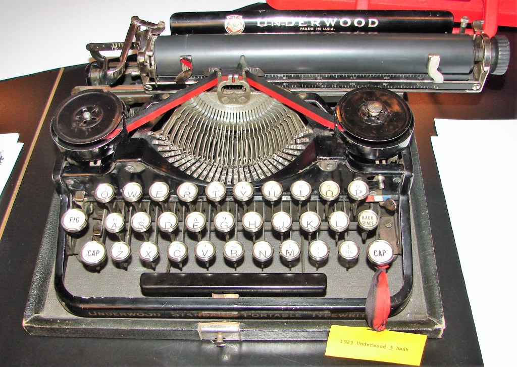 …a 1923 Underwood 3-bank, which has a cap-shift to capitalize the letters, and a figure-shift if you want to type the number or punctuation mark above the letter…