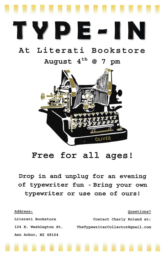 Thank you Charly’s Typewriter Collection & Repair, and Literati Bookstore for holding this fun event.