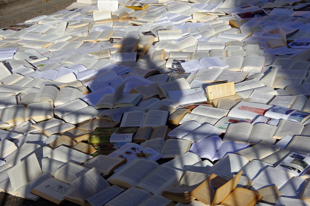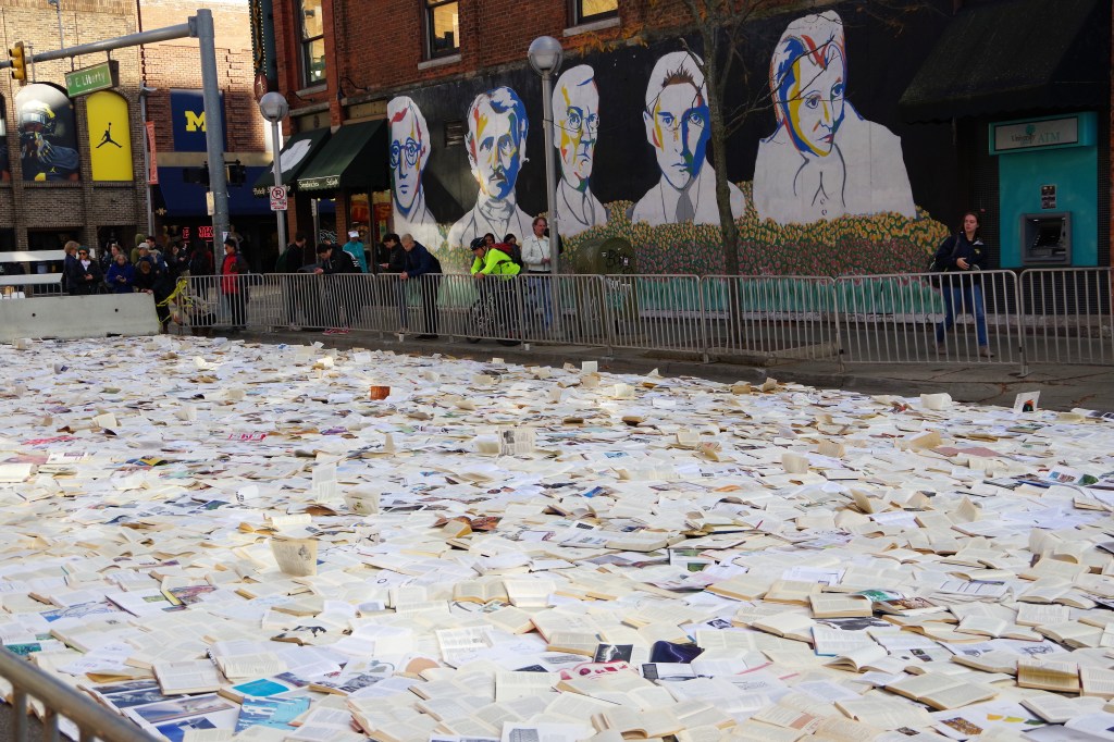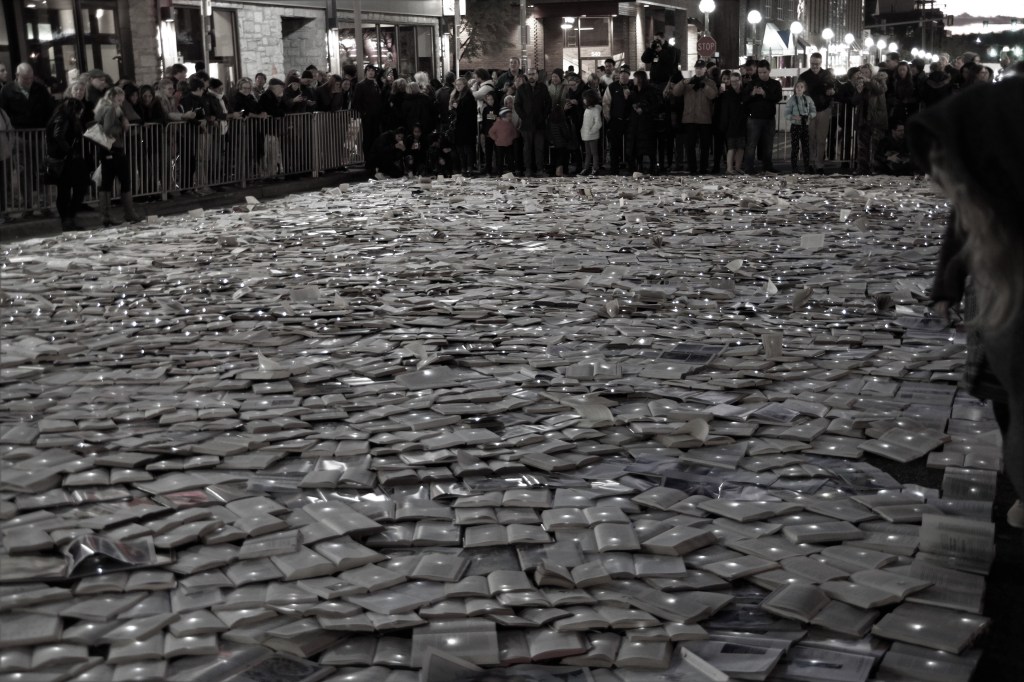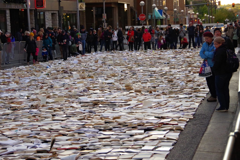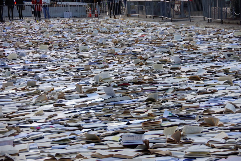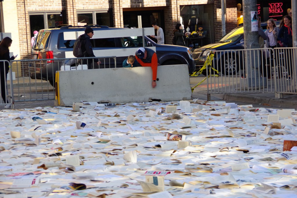 I wondered what ten-thousand books spread out on a city block would look like and its meaning. The camera and I made the trip.
