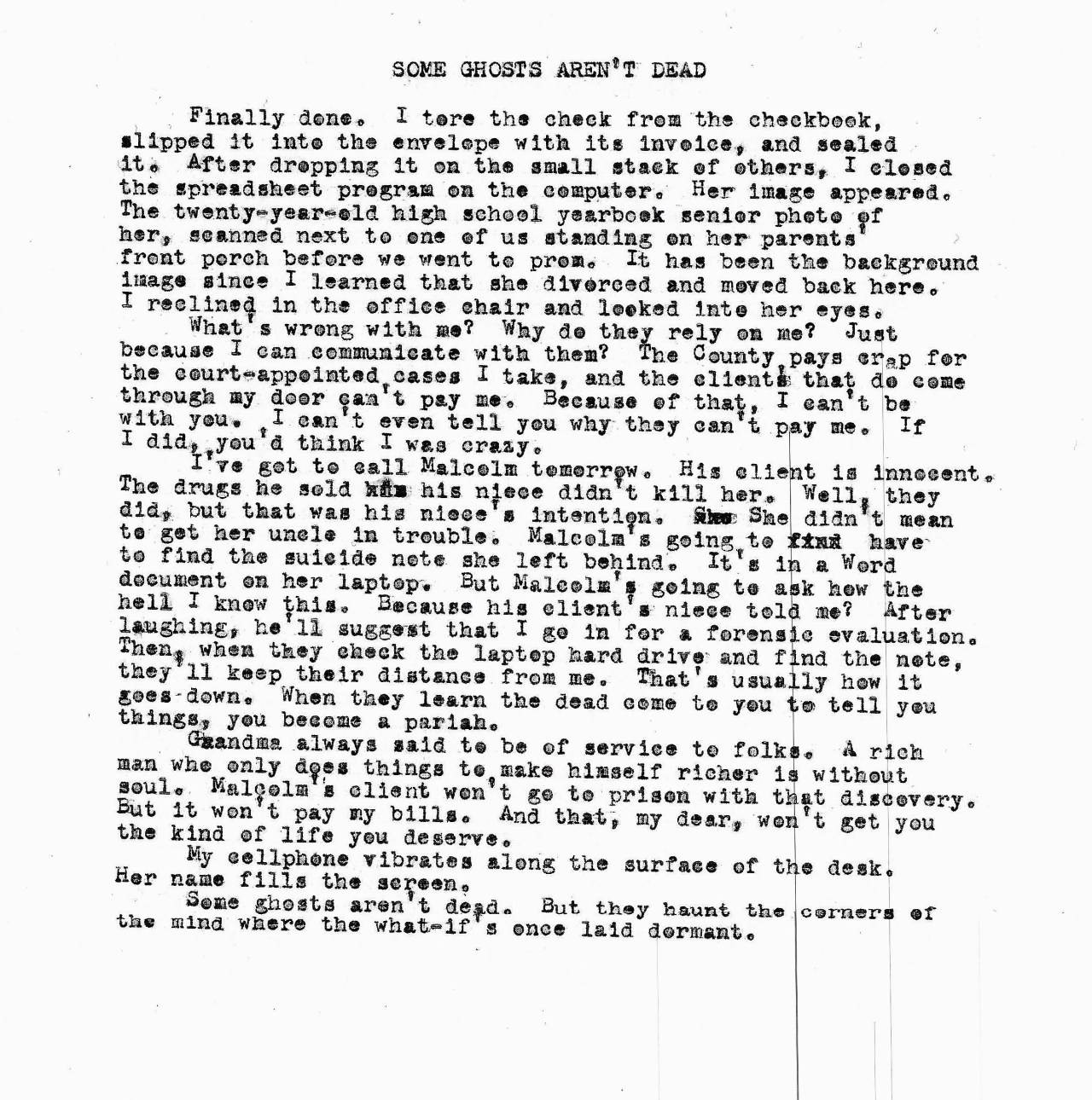 Joe Van Cleave’s first typing assignment of 2019 was a helpful one for me. I’ve had this character bouncing around in my head (along with some of the other characters surrounding him) for a number of years. I just haven’t focused on him that much. I did have a couple short stories published in a local publisher’s anthology collections, but he, and his world, is still a work-in-progress. So for this assignment, which is to write an interior monologue, I decided to spend a little time getting into Trevor Aldabra’s head. Before you is that one-page moment of time.