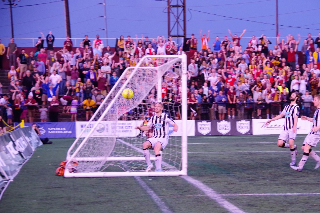 In the 84th minute, Brogan Shrimpton knotted the match with this chip shot over KFC keeper Hasten Biddlecome.