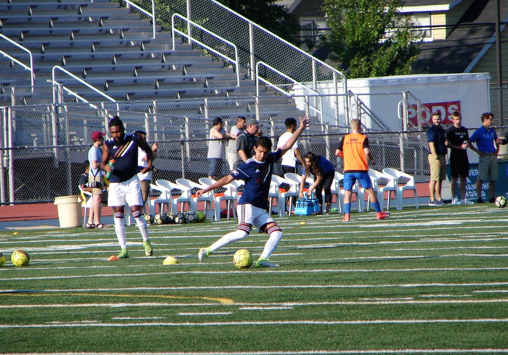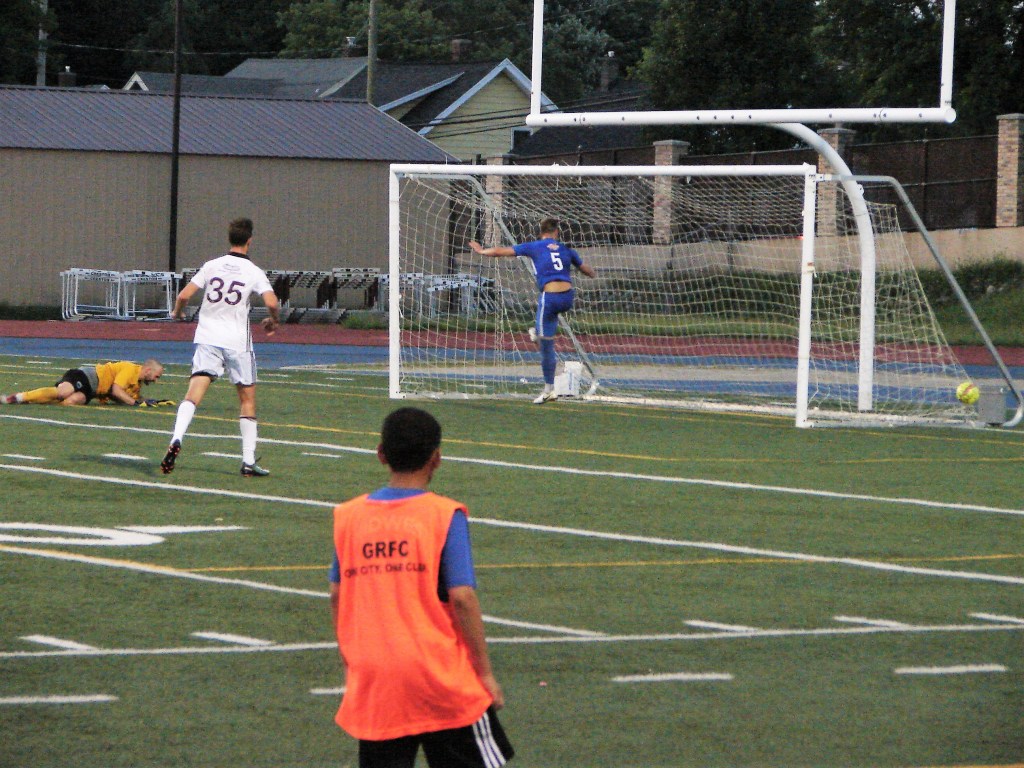 But Grand Rapids was not about to roll over, fighting for the playoff position themselves, they rallied with two goals. The first came almost immediately after Lawson’s penalty kick when Matt Whelan scored his second goal of the match in the 63rd minute. Seventeen minutes later, a perfect strike off the foot of Caleb Postlewait put them ahead, 4-3.