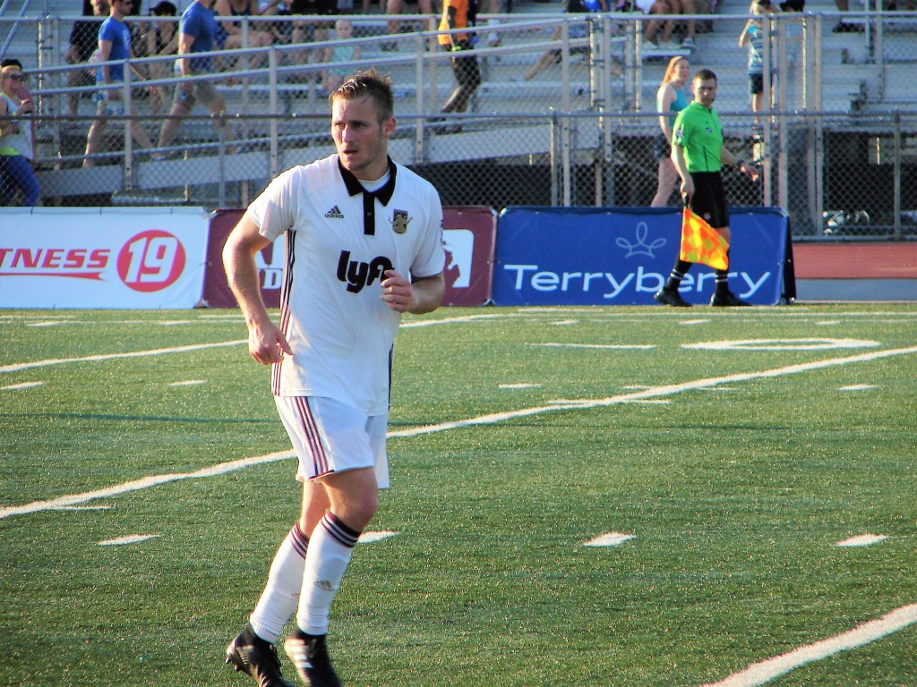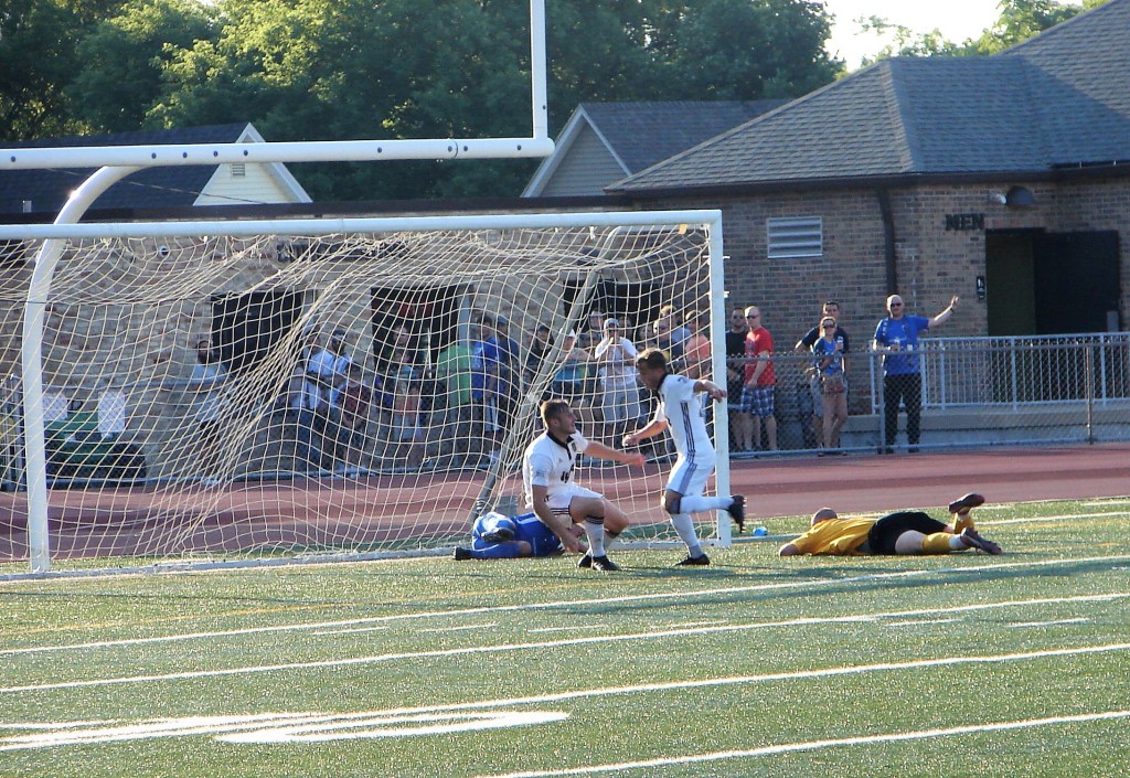 But Grand Rapids was not about to roll over, fighting for the playoff position themselves, they rallied with two goals. The first came almost immediately after Lawson’s penalty kick when Matt Whelan scored his second goal of the match in the 63rd minute. Seventeen minutes later, a perfect strike off the foot of Caleb Postlewait put them ahead, 4-3.