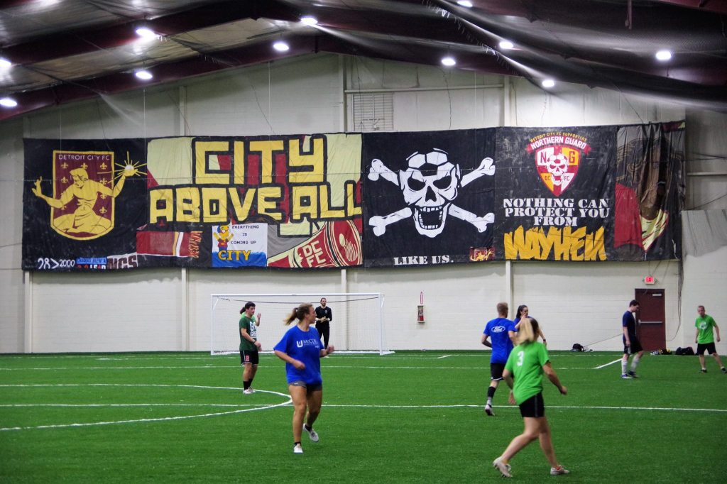 Two weeks later, Detroit City FC played a friendly against Michigan State University at The Corner Ballpark in Detroit. It was chilly and, up until an hour before the match, rainy.