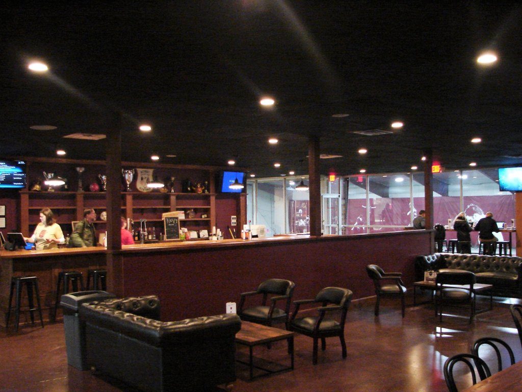 Instead, I went to the watch party at our new Detroit City Fieldhouse and City Clubhouse. Located at 3401 East Lafayette in Detroit, the Clubhouse is the bar/restaurant/gathering place elevated between two indoor soccer pitches at the Detroit City Fieldhouse. The facility opened on October 27th, with an alumni game on the boarded field.