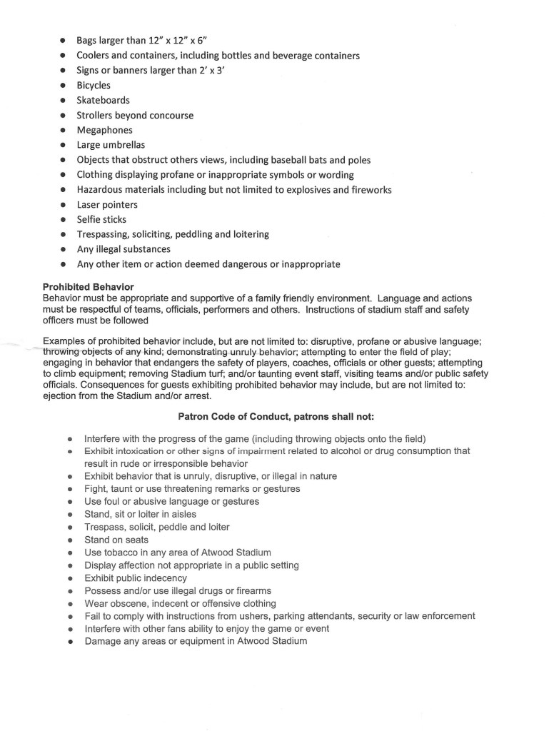 As expected, under the auspices of MLS-USL crowd control, we were greeted with five-pages of stadium policies, including a Patron Code of Conduct loaded with a bunch of “Do Nots”