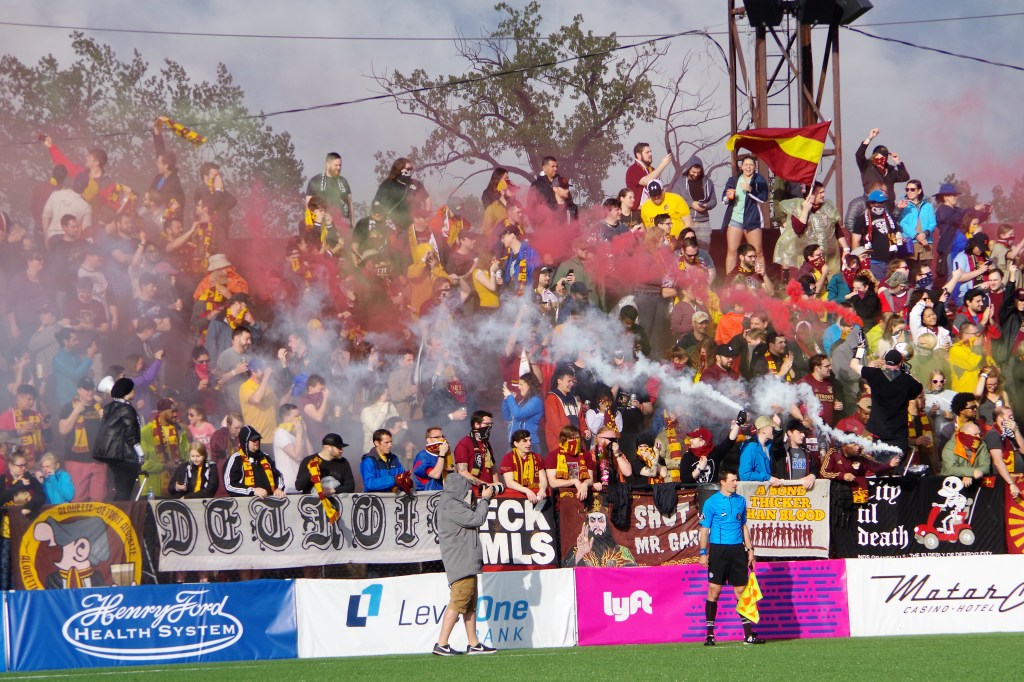 Michigan provided its variety of weather today, beginning with hot, followed by rain, then tornado warnings, the rain becoming intermittent, concluding with sun. Due to such uncertainty, the annual home-opening tifo raising was postponed to the next match.