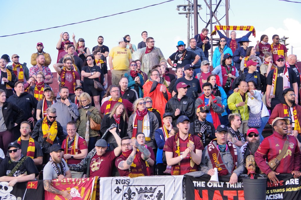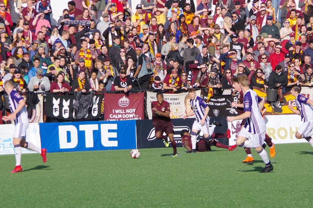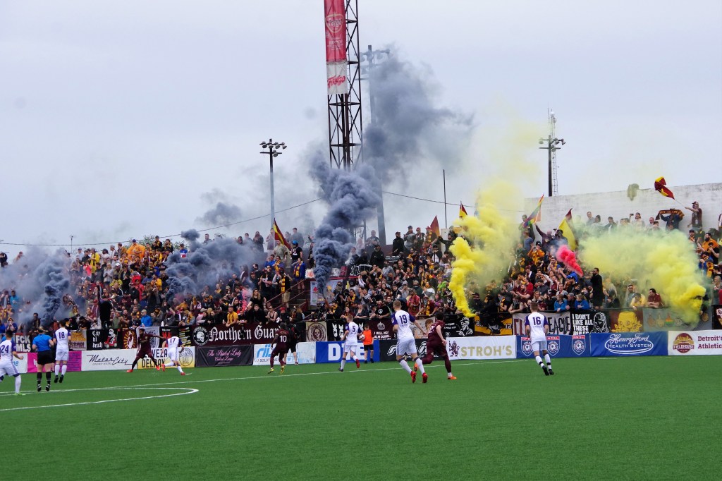 Michigan provided its variety of weather today, beginning with hot, followed by rain, then tornado warnings, the rain becoming intermittent, concluding with sun. Due to such uncertainty, the annual home-opening tifo raising was postponed to the next match.