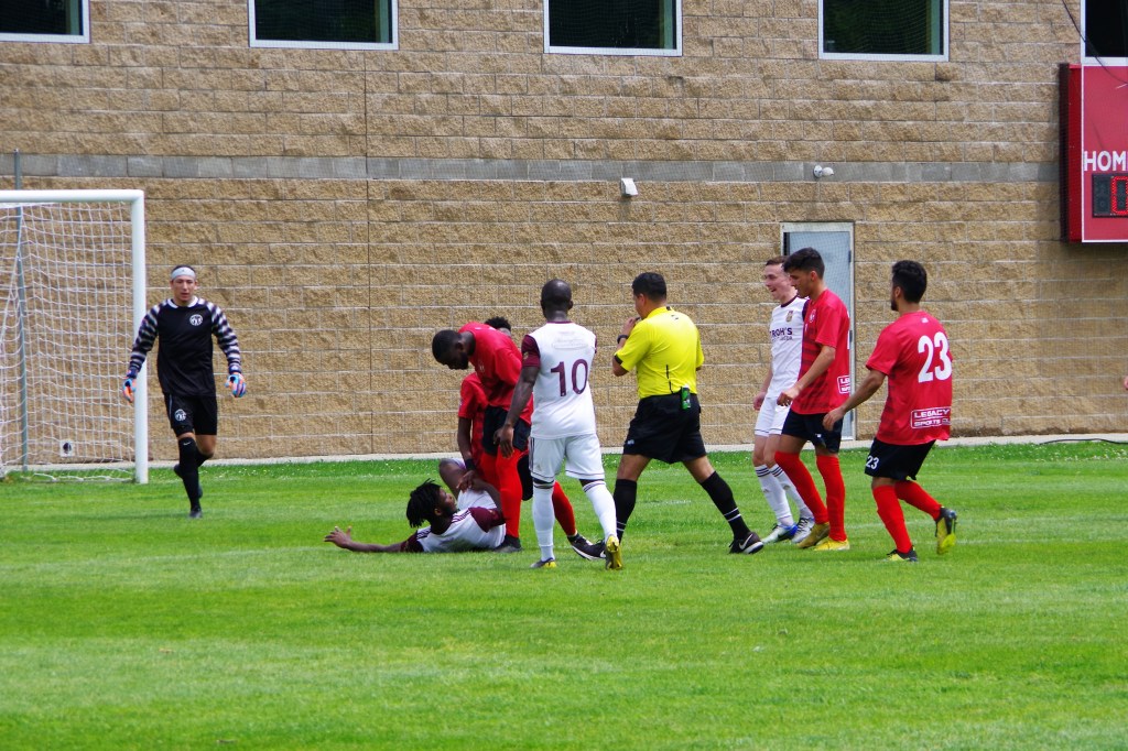 City’s Abdoulaye Diop seemed to get under the skin of every FC Indiana player. By the 24th minute, it resulted in Anthony Dinz and another Indiana player taking Diop down, getting in a punch or two in the process. When the dust settled, Diop was shown a yellow card and Dinz left the match on a red card.