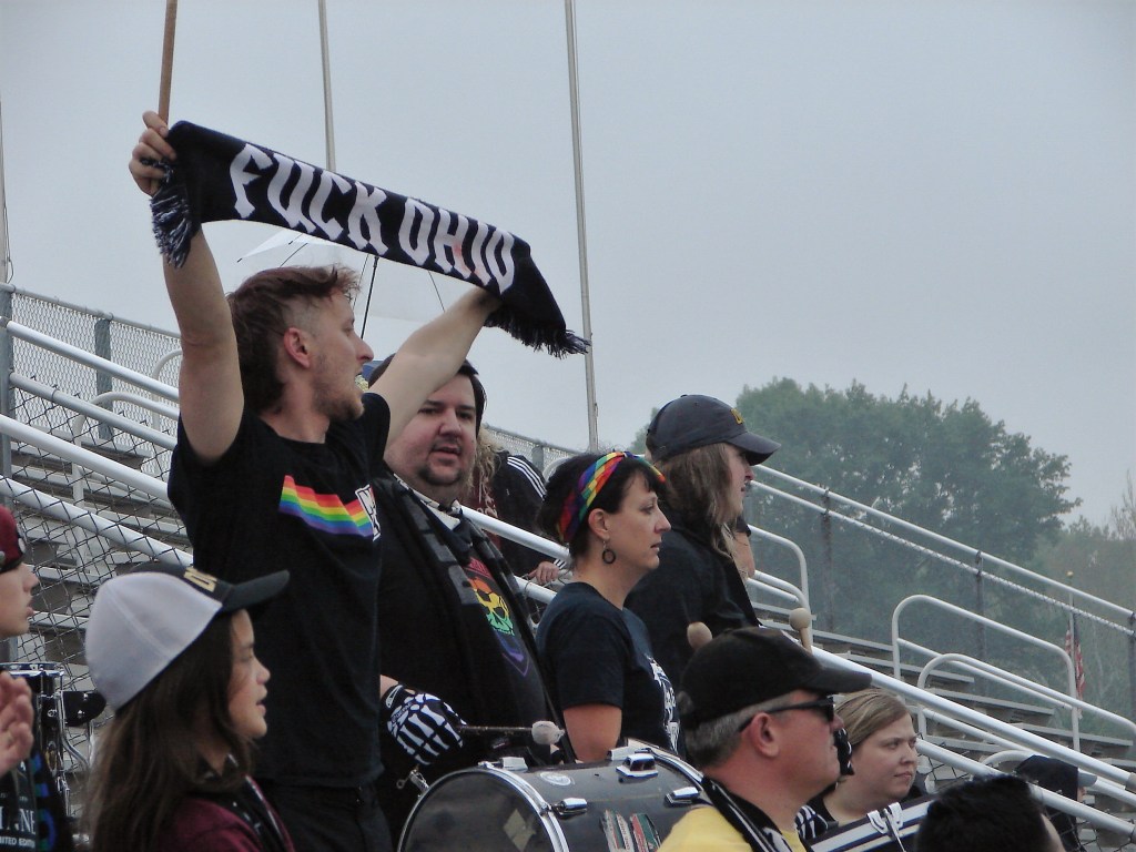 This season, we had to make two trips to that four-letter word state south of Michigan – Ohio. That meant Northern Guard Supporters bringing their scarf containing its controversial message: