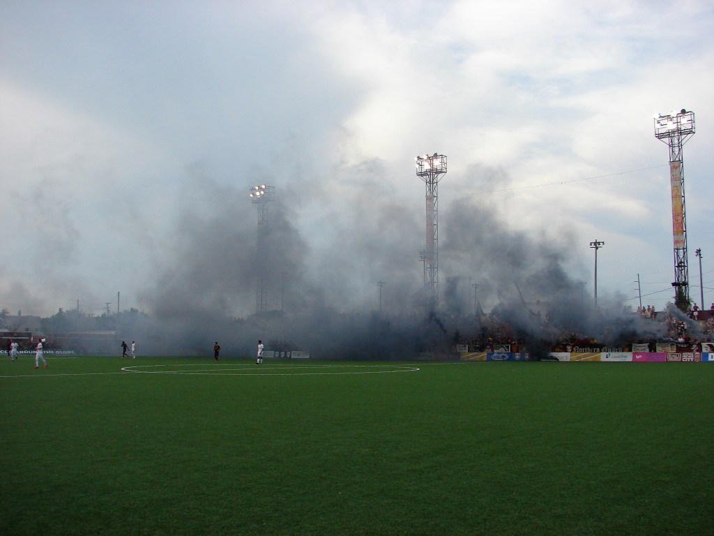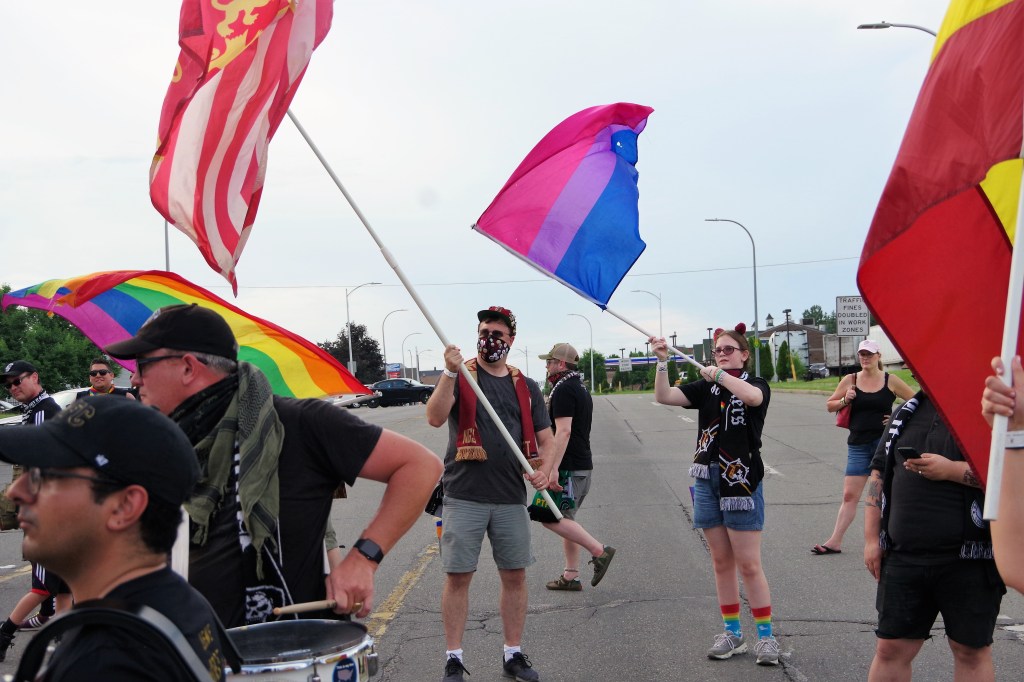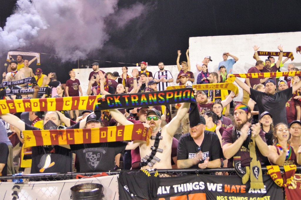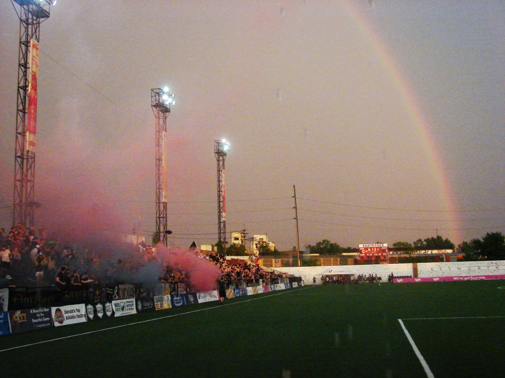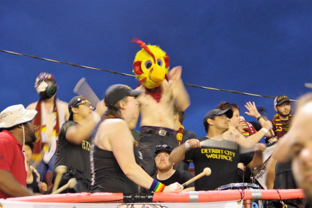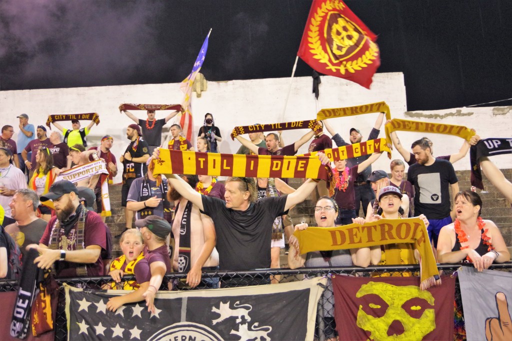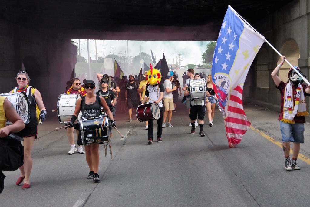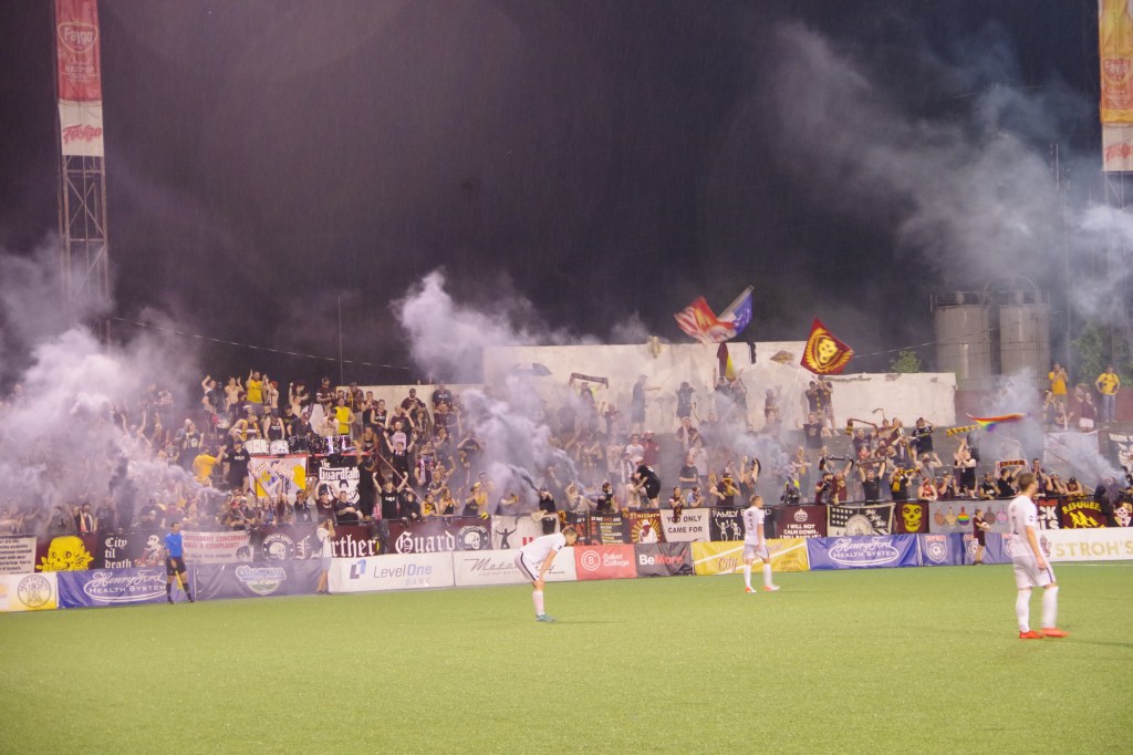 Standing down at this end for the first half, I was surprised at how quiet the Grand Army was. In the previous match against Toledo Villa FC, I stood here and a single Toledo fan brought a drum and chanted solo. He was louder than these guys. Still, we’re able to make friends with supporters from other teams.