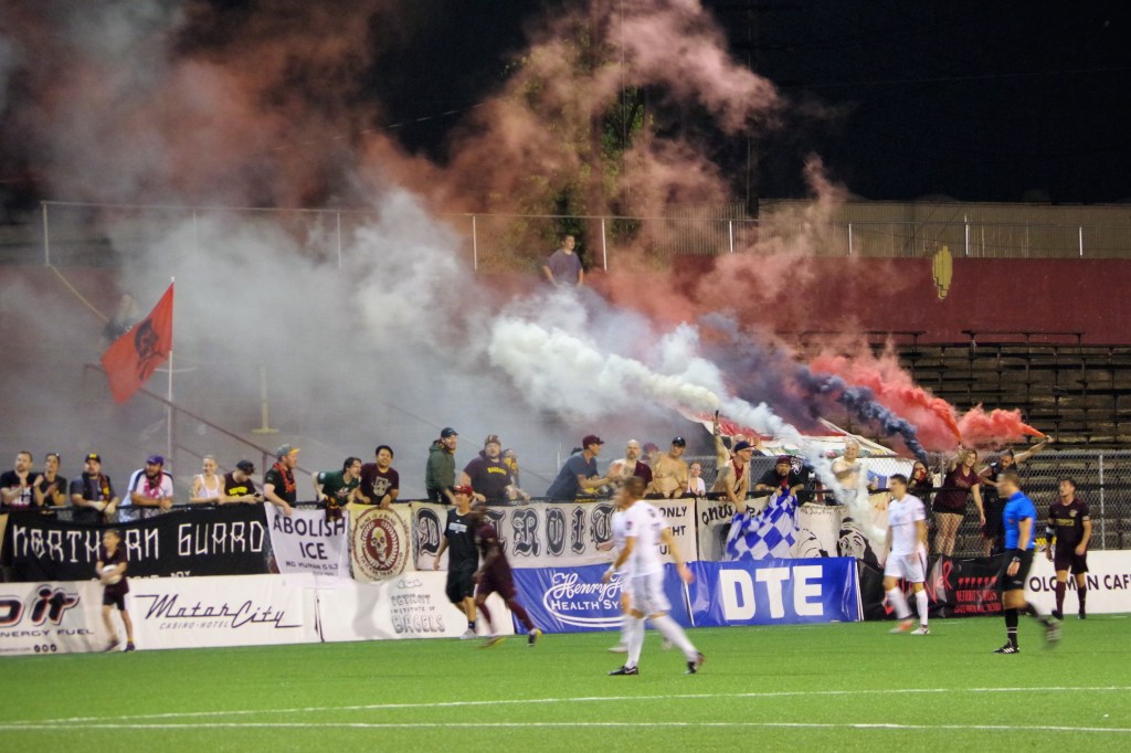 The first half came to a close with Grand Rapids leading 1-0. Here’s two interesting points about this game. First, the goal scored by Eric Conerty of Grand Rapids FC in the 34th minute broke City’s 9 game shut-out streak, which lasted a total of 844 minutes. But here’s the real interesting fact. Through the 14-game NPSL regular season AND the two playoff games, the 54 minutes between Conerty’s goal and Shawn Lawson’s goal in the 88th minute were the only minutes Detroit City FC was behind in a match. Think about that for a moment.