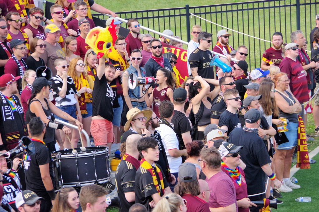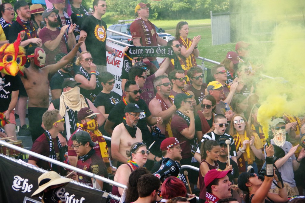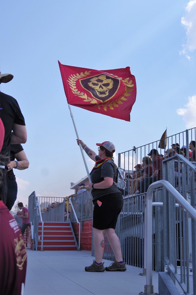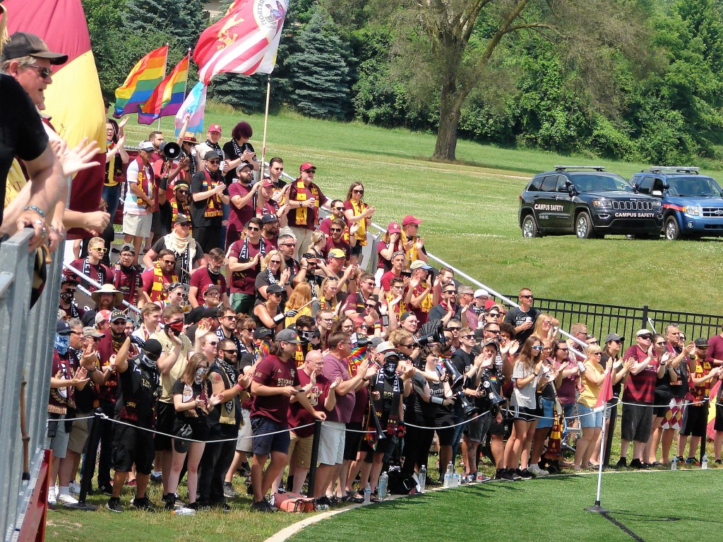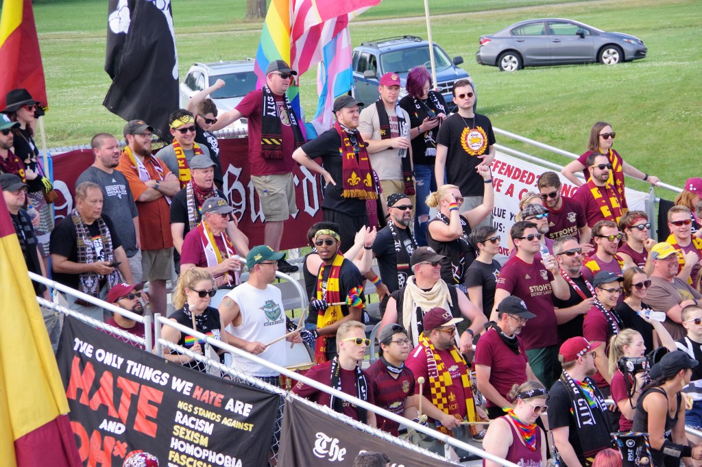 On this hot afternoon, the Northern Guard were secluded to a separate bleacher section. It was so full many of us sat in the Ann Arbor section. Perhaps the better fit would have been to seat the Ann Arbor fans in the side section and the Northern Guard in the elevated stands.