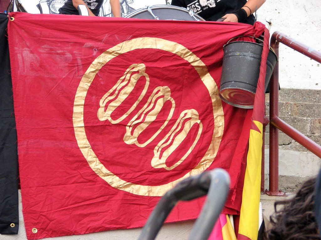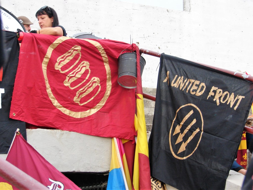 The day after our friendly against Indy Eleven, a soccer pundit tweeted photos of a couple of NGS banners – the United Front and the Fuck ICE banners – to try to chill the displays by suggesting they might provoke confrontation which could lead to people getting hurt. It led to an explosion of chatter which lead to this new banner, and a continuance of the others (and I like the Coney Dog version of the United Front).