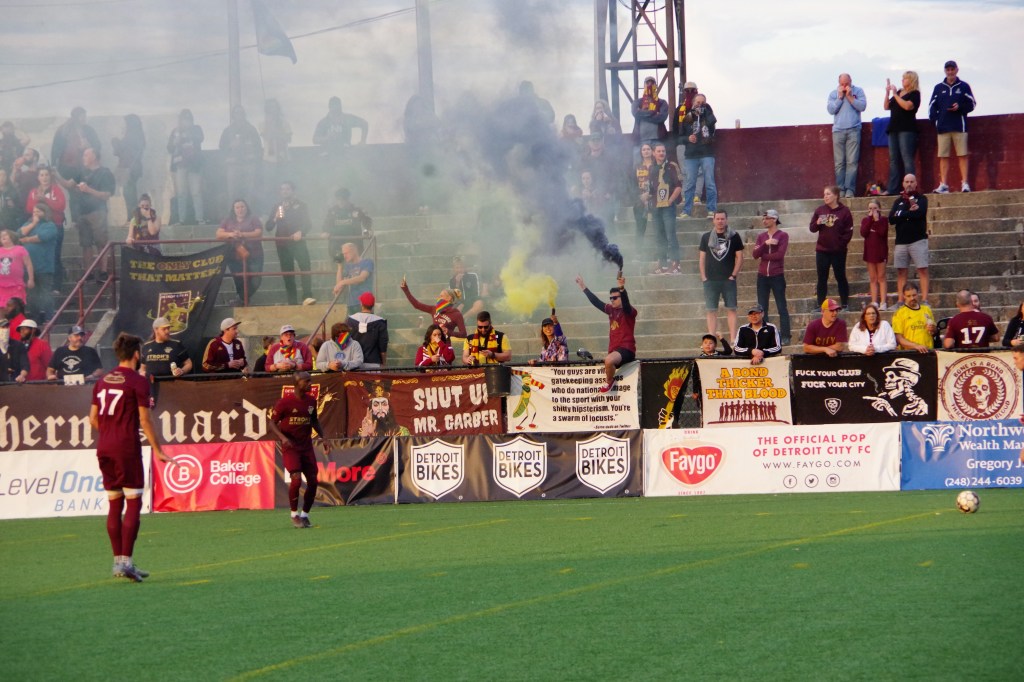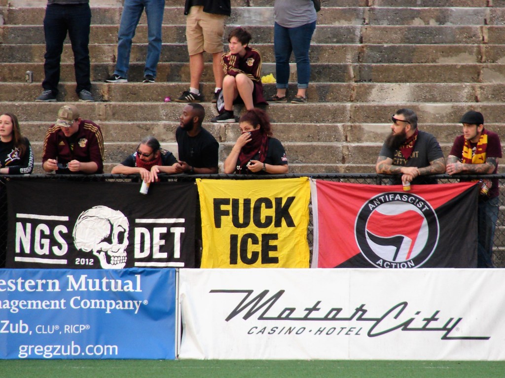 You see, Detroit City FC’s origins are community-based. This is a club building community through the sport of soccer. As supporters, we find that fascism, racism, and detaining refugees to be contrary to the building of community.
