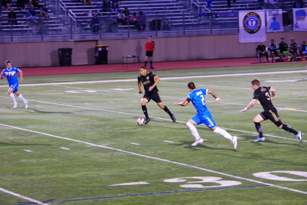 Milwaukee has been a tough opponent during the NPSL years, despite our 3-win, 1-draw record against them. Tonight, they were a challenge once again. In this sequence, it was luck on their side as we found the goal post, then scored only to be called back on an offside.