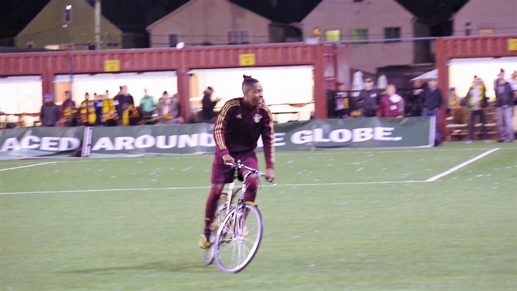 The first order of business was presenting the Black Arrow Award. The Black Arrow was the nickname of Gil Heron, a Jamaican footballer who lived in Detroit and became the first black player for Celtic F.C., and is awarded annually to Detroit City FC’s Most Valuable Player. The previous winners were