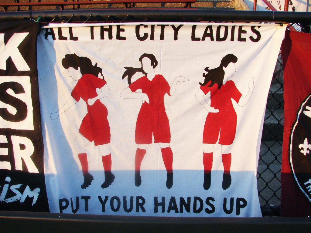Now, due to the pandemic, fans were not allowed into the stadium. Is that going to stop the Northern Guard Supporters? Oh no. This is the first match at Keyworth for the women’s team, and if they weren’t going to be allowed to enjoy the full-on atmosphere of the songs and chants, they were still going to be honored with a tifo and smoke.