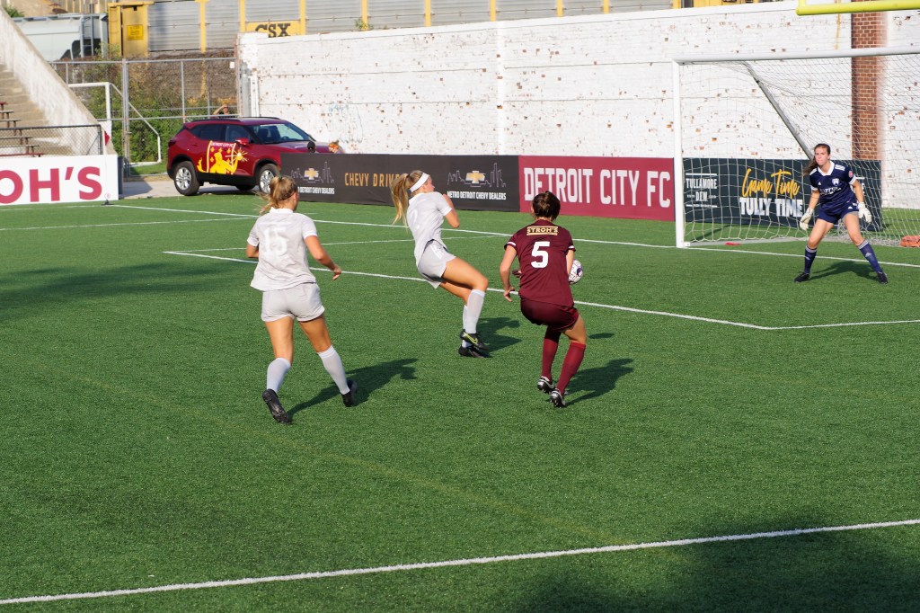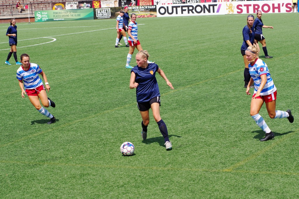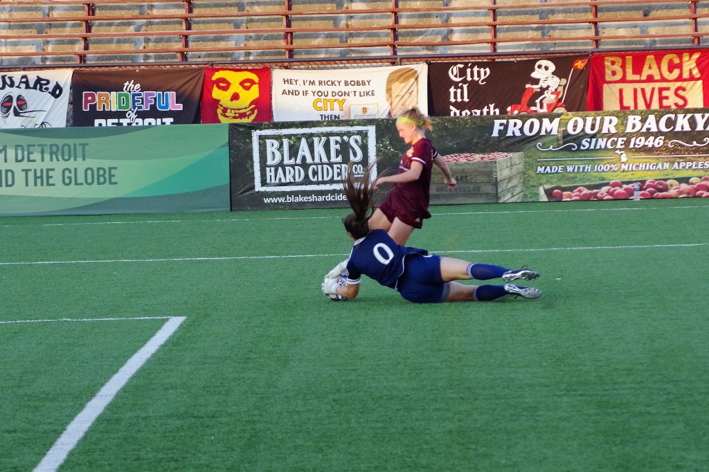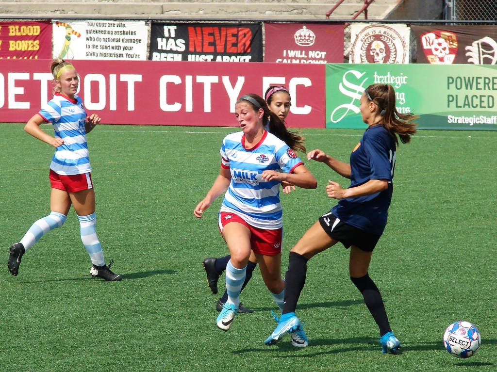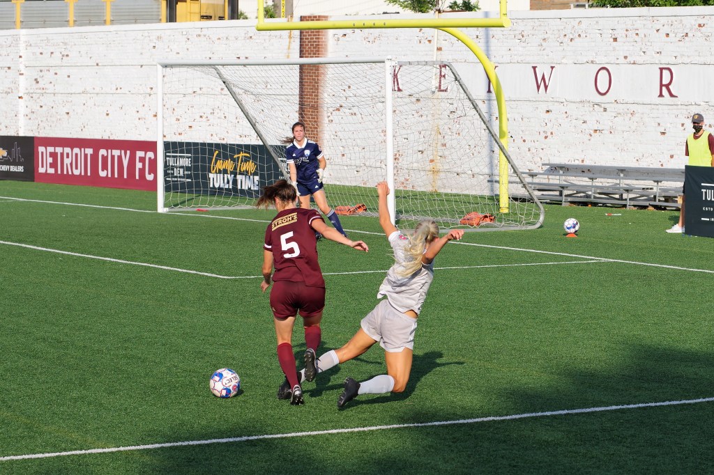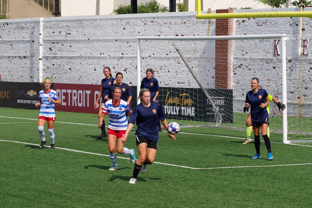 In the 9th minute, Macy Hollingsworth blasted a shot into the back of the Detroit City FC net. However, three minutes later, Sarah Huge turned a Midwest United defender inside out, fired a shot that Midwest United keeper, Maia Perez, got a hand to, but the ball trickled parallel to the line for Caroline Fleming to kick into the gaping goal.