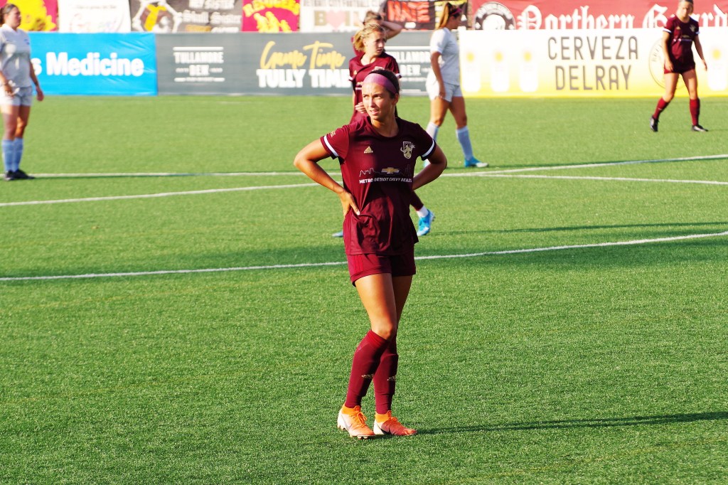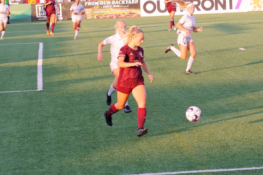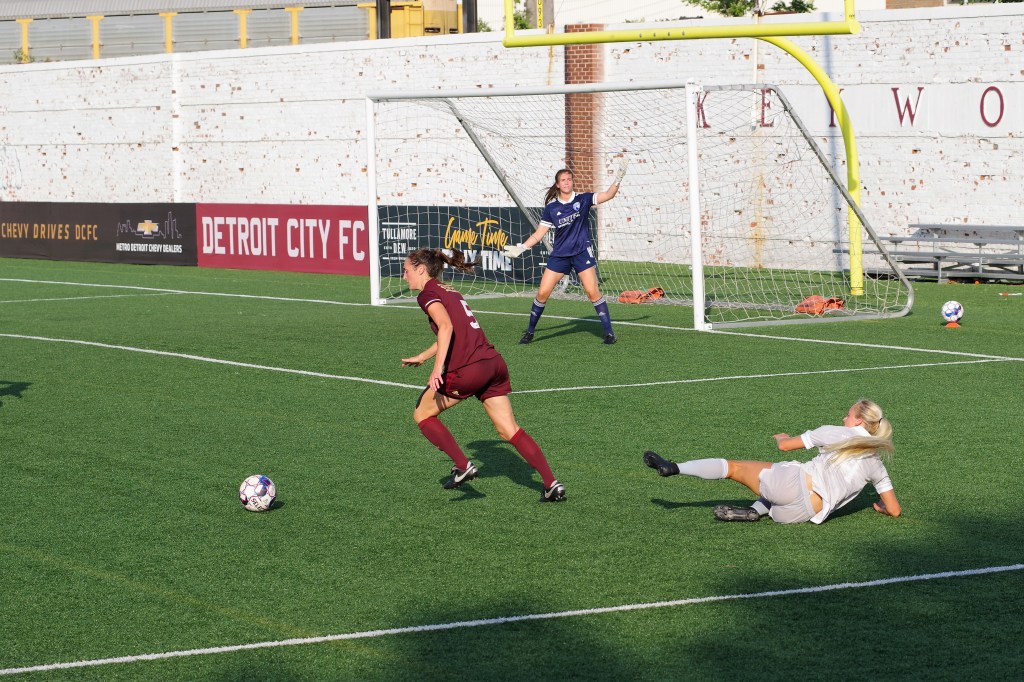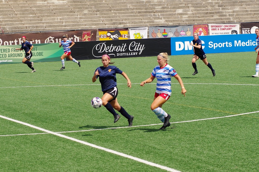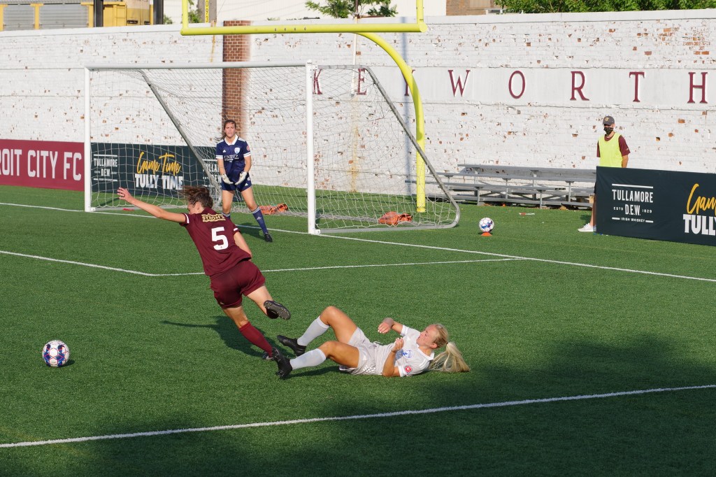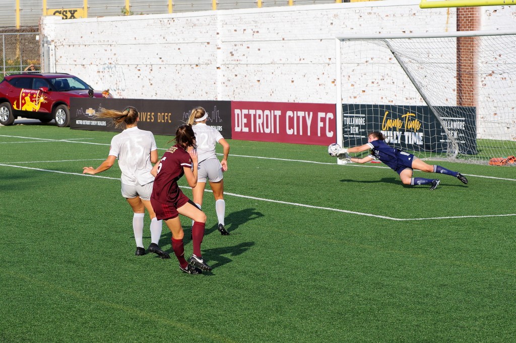 In the 9th minute, Macy Hollingsworth blasted a shot into the back of the Detroit City FC net. However, three minutes later, Sarah Huge turned a Midwest United defender inside out, fired a shot that Midwest United keeper, Maia Perez, got a hand to, but the ball trickled parallel to the line for Caroline Fleming to kick into the gaping goal.