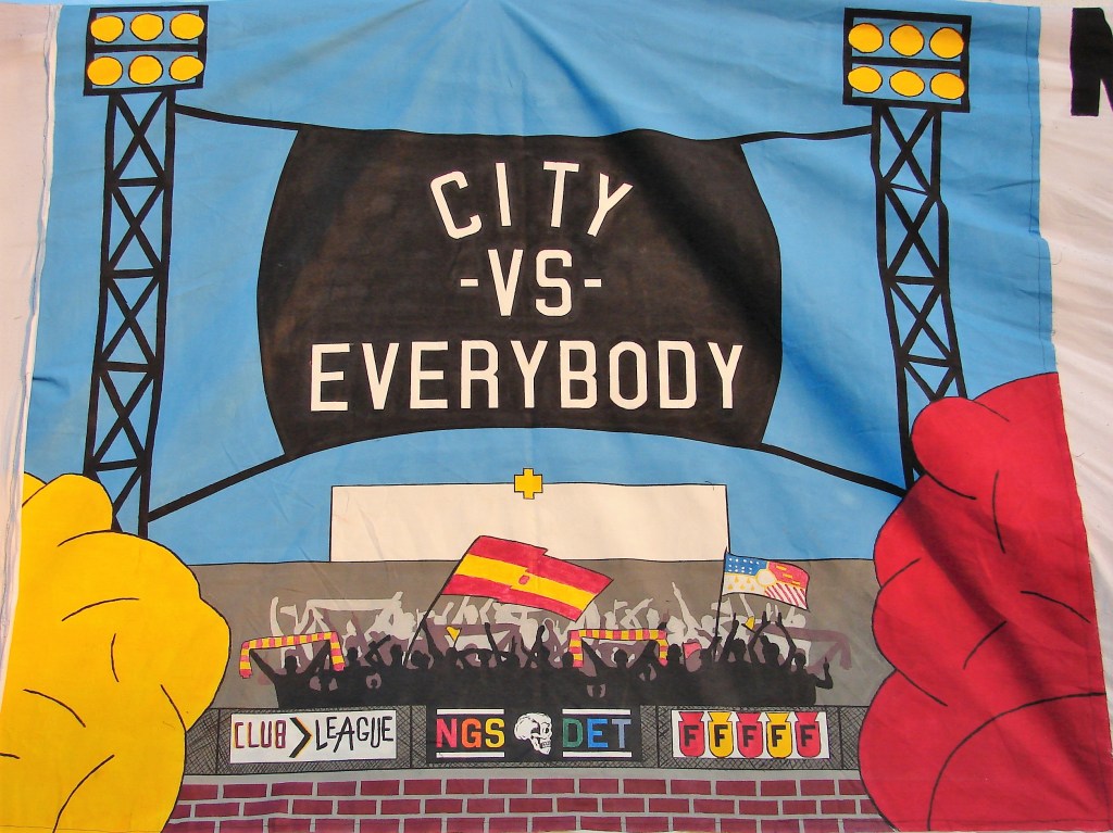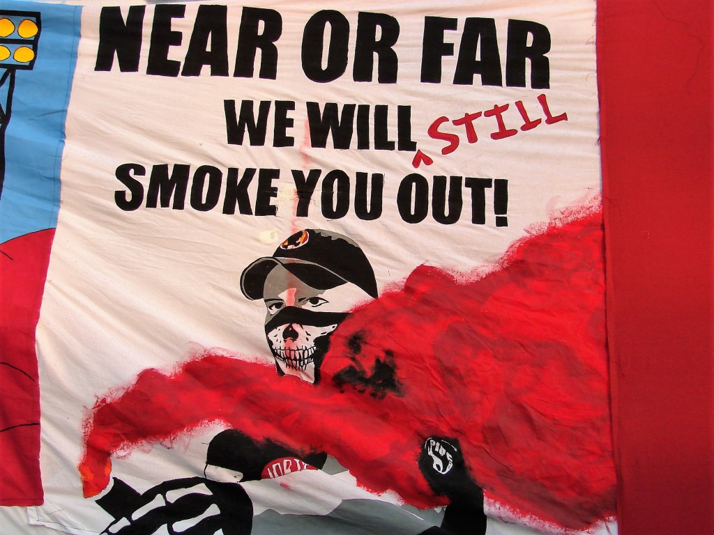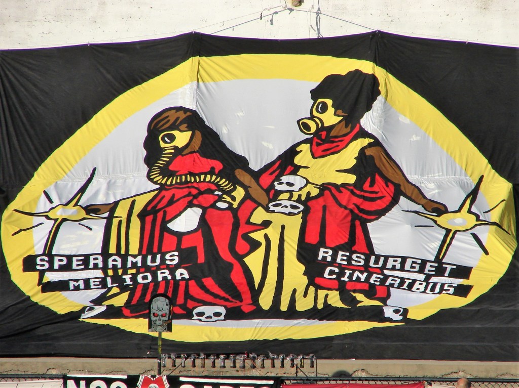 Instead of a tifo drop on the south wall, a quilt of several tifos, made by individual Northern Guard Supporters, stretched the wall, in what they called Quarantifo.