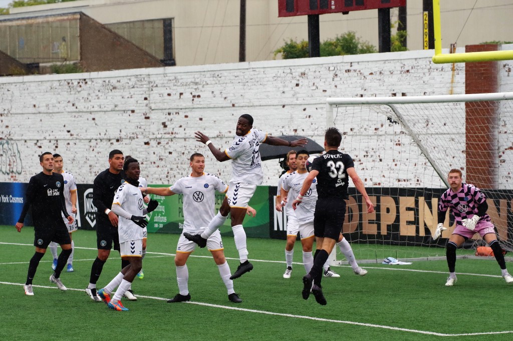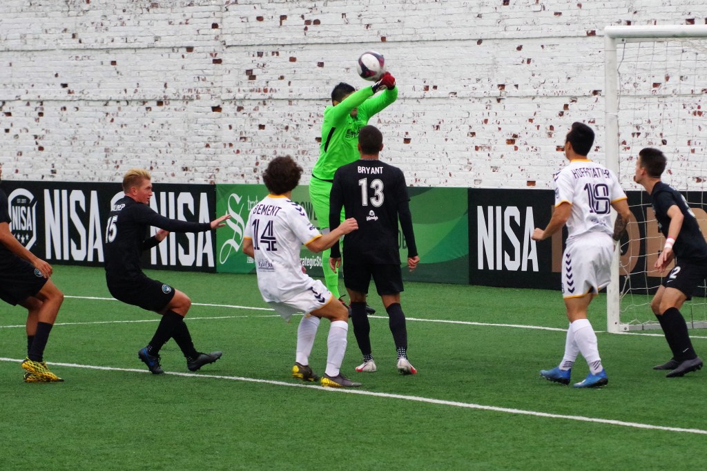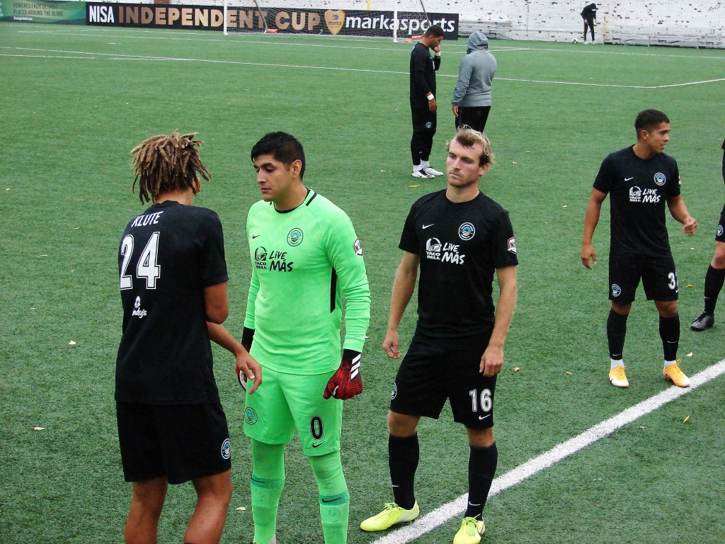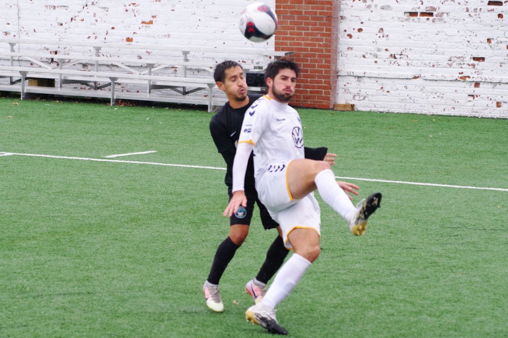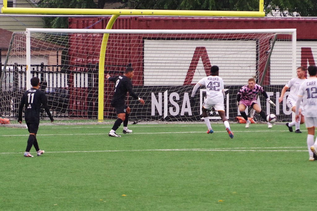It was a wet start to the game, as autumn rain fell on Keyworth. In the 12th minute, Darwin Lom cut in from his run with the ball along the far side, and put a pass behind the Strikers’ defenders that Brian Bement ran onto and fired past Steven Barrera to give Chattanooga the early lead. After that, the play opened up with chances on both sides of the dampening pitch.