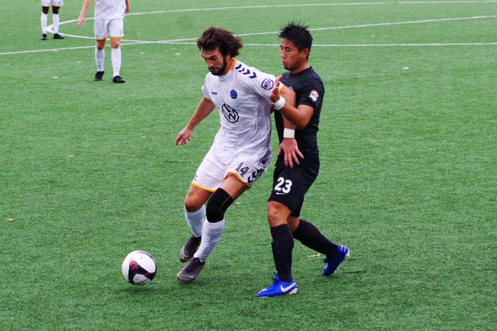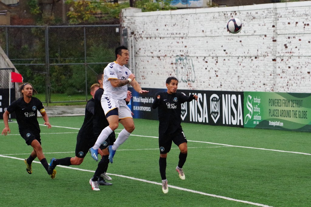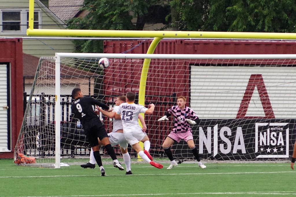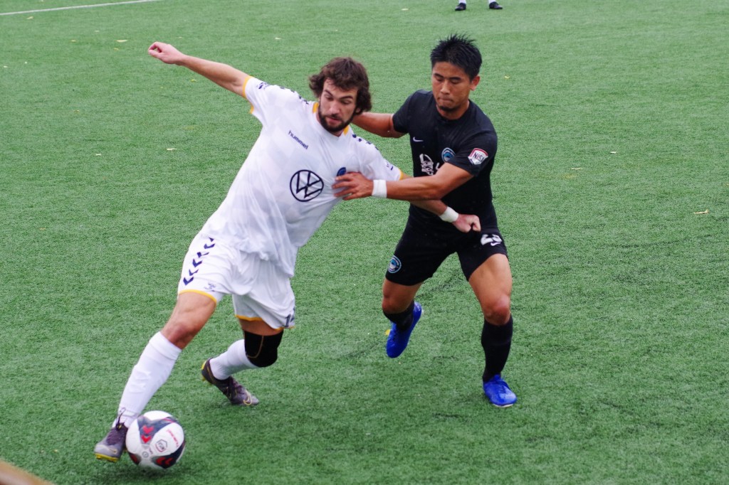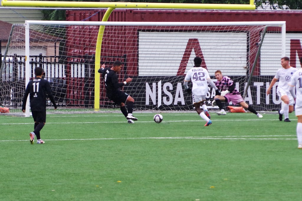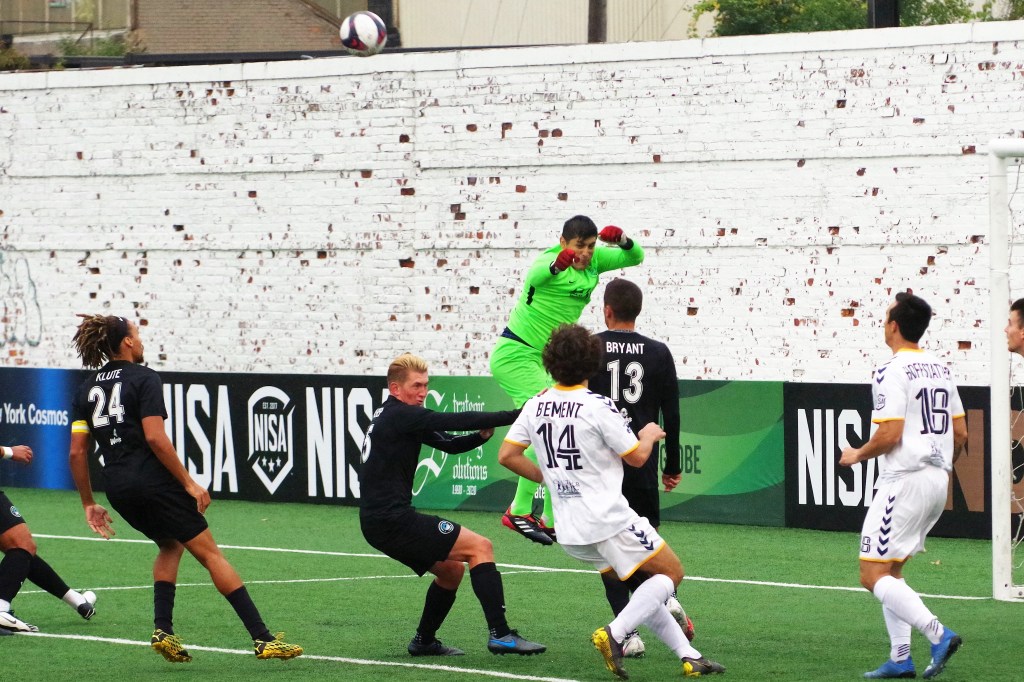 It was a wet start to the game, as autumn rain fell on Keyworth. In the 12th minute, Darwin Lom cut in from his run with the ball along the far side, and put a pass behind the Strikers’ defenders that Brian Bement ran onto and fired past Steven Barrera to give Chattanooga the early lead. After that, the play opened up with chances on both sides of the dampening pitch.